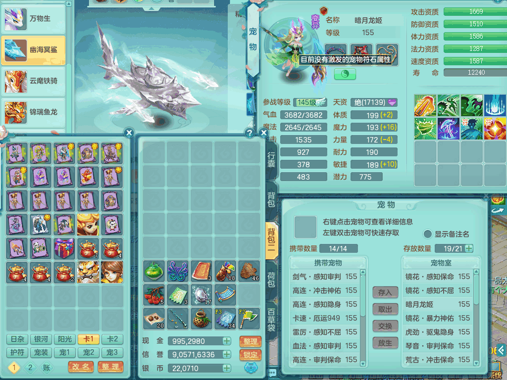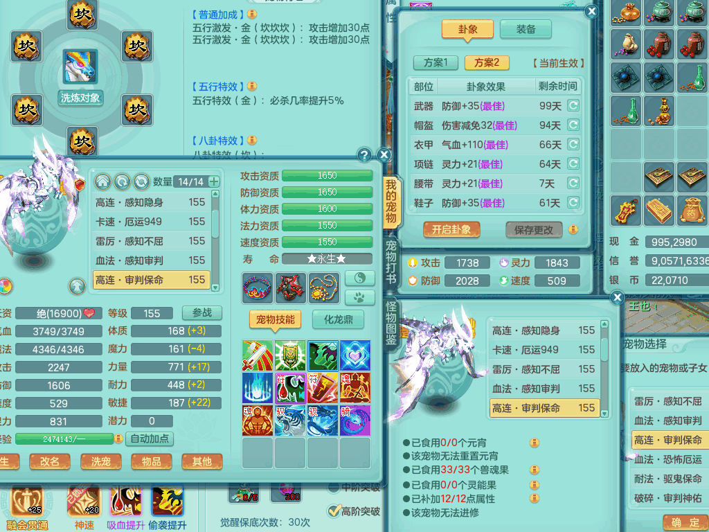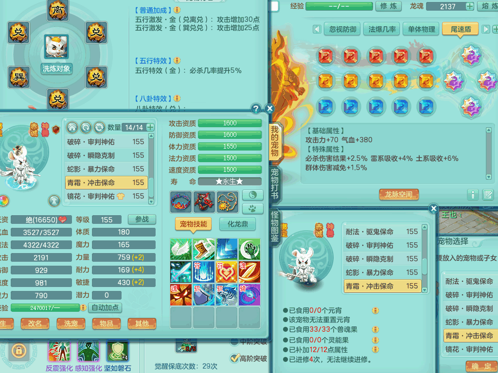 lt8546 【潜龙在渊】浪淘沙159男魔王,精灵歌,9龙4内胆神,1破镜,【11只觉醒,已潜龙】,5宠皮,4位靓号不含4,4只六技能镜花灵,2只6技能龙姬,3特殊(善恶,月光,锤子),18段匠心易单加衣服 ,法术缭乱群体激励单加51鞋子,5.5基础鼎+70攻、280血,13个格子,8个纯六字,6个五字,24只满果子,宠排在榜,经验修炼成就在榜,永久称谓,冰晶庭院,5个孩子,11个坐骑,完美染色原始暴龙+西瓜冰武器皮肤。 163邮箱