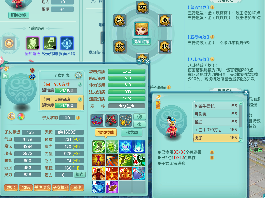 tx8564 天下无双 159 方寸 单人坐骑 精灵舞 满星穹 5.0化龙鼎 80仙兽灵 1内神 特殊(羽袭、雷光)7觉醒 8个真6字 11+满果子 2980邮箱