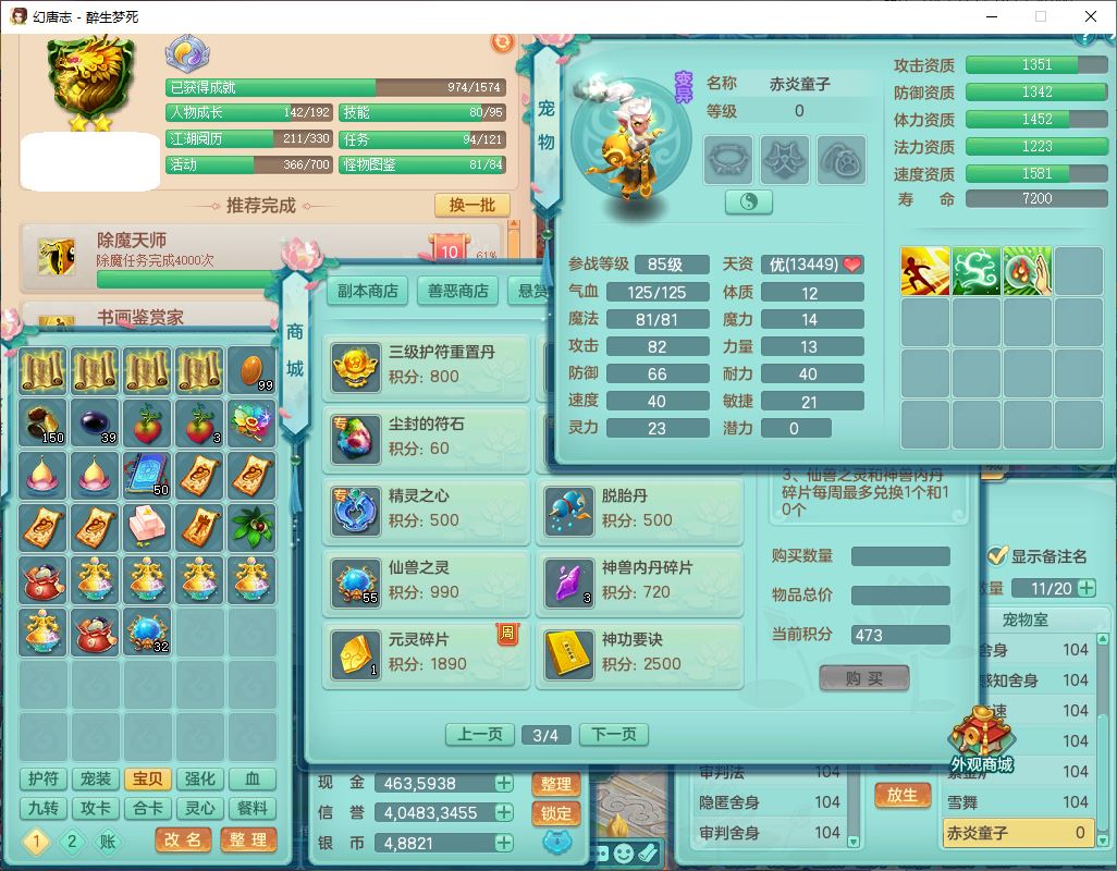 zs8567 醉生梦死99女无名【准潜龙号,差6只宝宝】力敏、力体魔、体敏三精灵,1龙2内2翻浆4舍身1金炉,2觉醒5宠皮3六字1五字11四字21只满果子,10红装备,崩山帽子,554狂暴破血武器,Y四海衣服,迅捷Y群体止戈鞋子,鼎3.0+42+168,1史诗1传说1精良法宝,永久外观饰物、精灵皮肤,32个仙兽灵,1双人飞行坐骑 qq邮箱