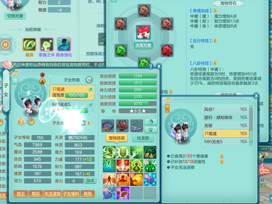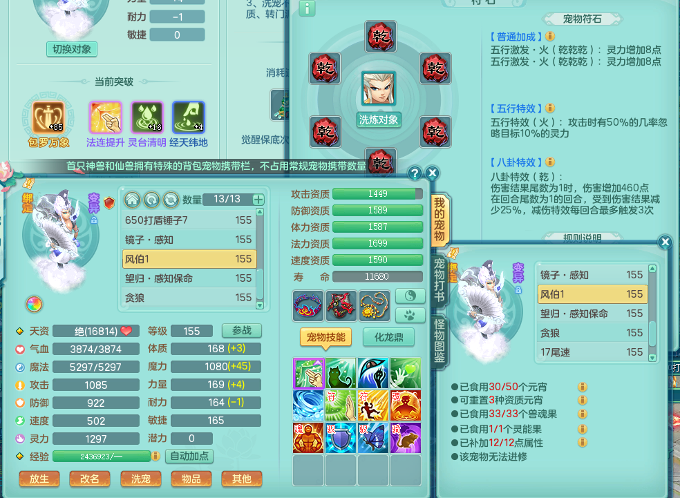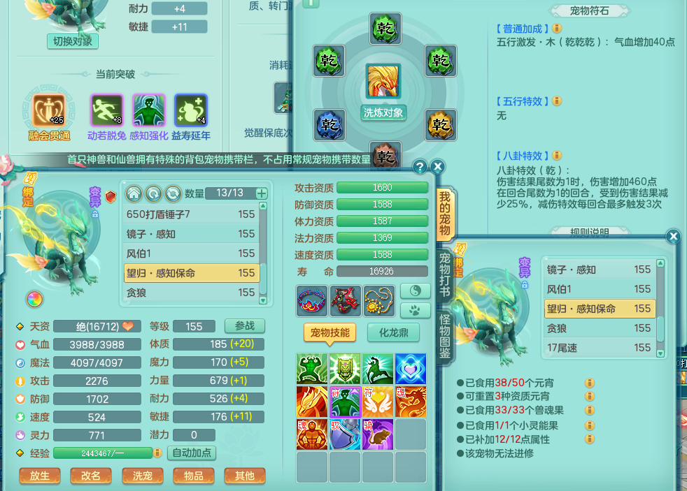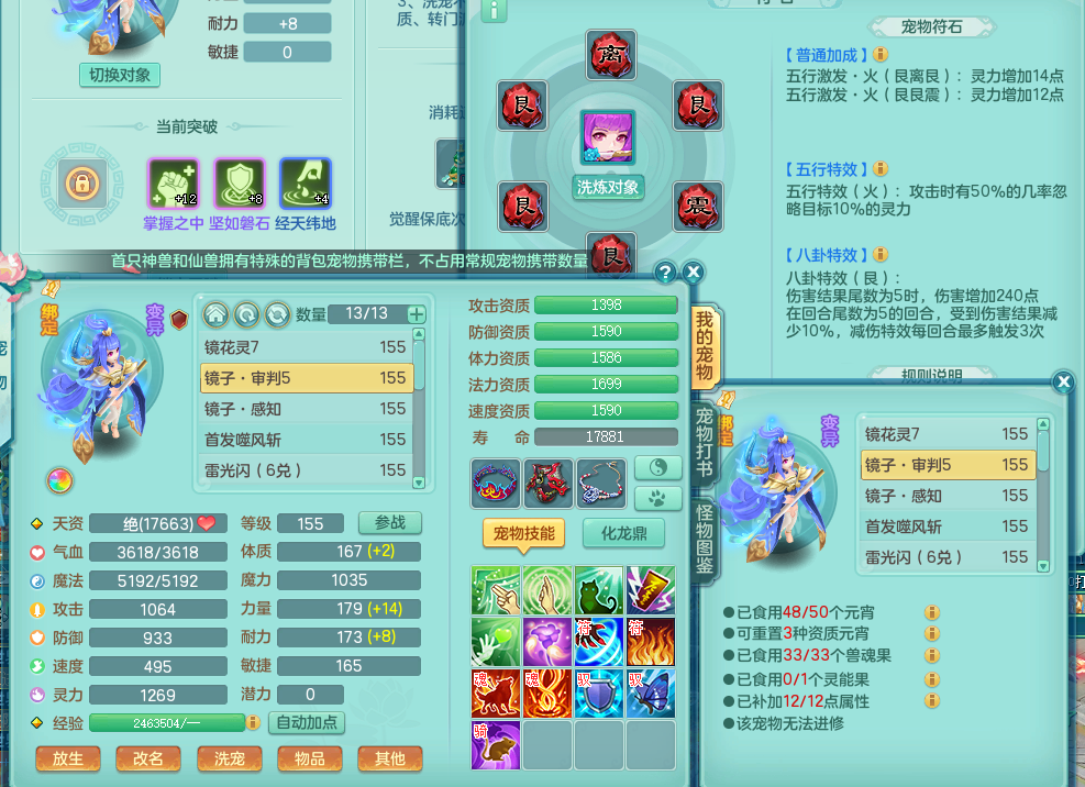 tx8585 (准潜龙在渊)天下无双 159 男无量 龙坐骑 精灵歌 满星穹 5.5化龙鼎毕业 月卡126天 1内神,9觉醒 7个真六字,5只6技能镜花灵(可6镜子),18+满果子,4特殊(雷光,翻浆,噬风斩,荒古和雷利未打),潜龙只差符石1大2小条防御 2980邮箱