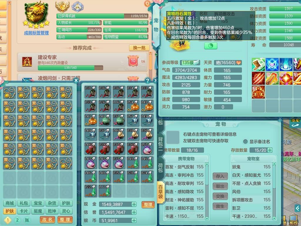 ym8613 【潜龙在渊】扬名立万159女魔王,精灵歌,7龙1龙皮,2内胆神,【11只觉醒,已潜龙】,3宠皮,4只六技能镜花灵,1只六技能龙姬,3特殊(羽袭,月光,青霜),有回春武器,封锁晶清单加50武器,物理921易成长单加57武器,2套星穹全满,6.0基础鼎+70攻、280血,物理躲避10%,15个格子,8个纯六字,1个五字,24只满果子,宠排在榜,经验成就在榜,永久称谓,3只双人坐骑。126邮箱