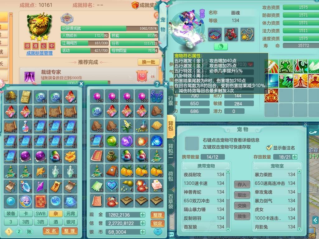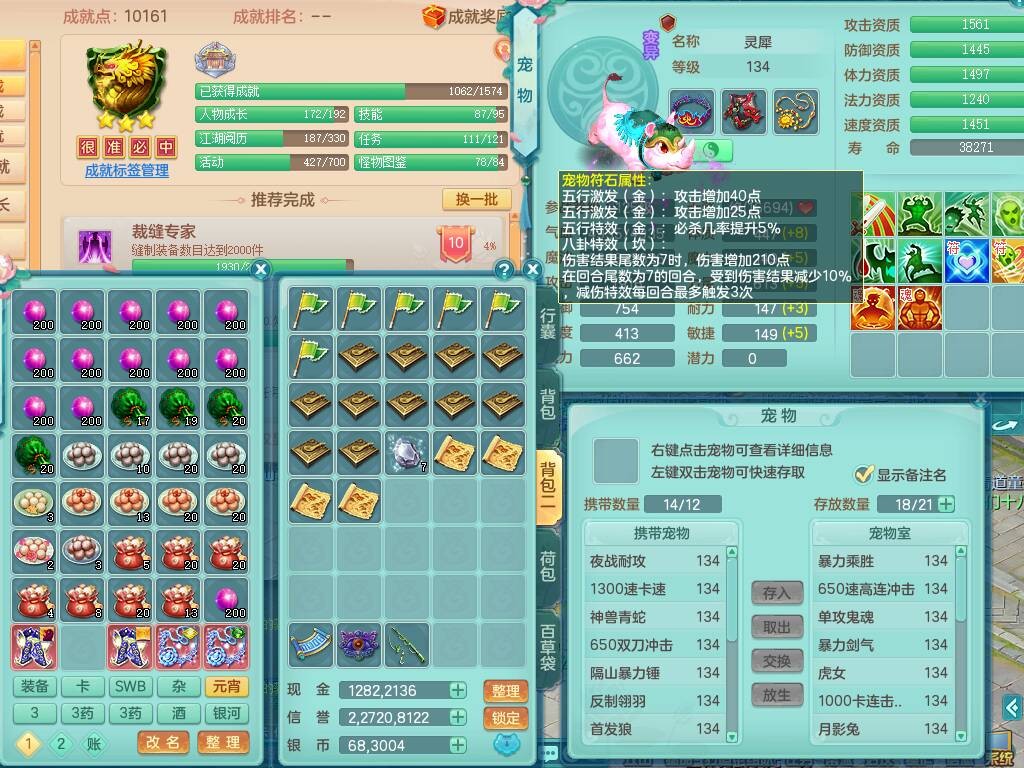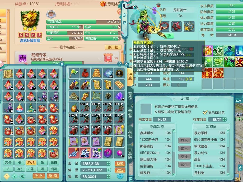 qq8619 七窍玲珑 129男方寸,精灵舞+歌,2龙(1龙无内),3内胆神,2只觉醒,5宠皮,愤怒激励单加腰带,6特,4.0基础鼎,23只满果子,仓库还有79个果子,宠排在榜,3只坐骑。 2980邮箱