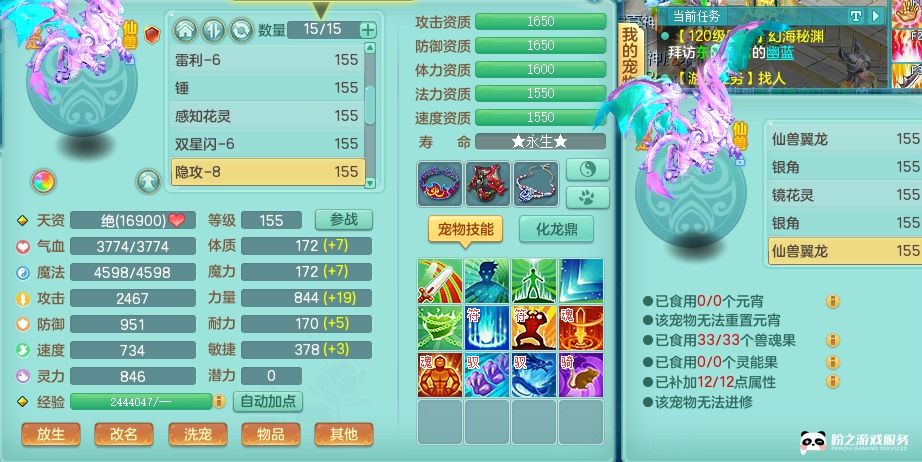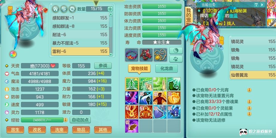 fc8639 【潜龙在渊】 风驰电掣 159 天宫 仙兽翼龙3条/有内丹龙/有内丹神/精灵技能(主动,被动)/满果子宝宝17个/2980邮箱(不支持单独换绑)/邮箱不可单独换绑/仙龙徽章3级 绝版4位靓号,6.0基础,华龙鼎毕业(封锁,五雷,法术缭乱都有)可玩全门派,4宠皮