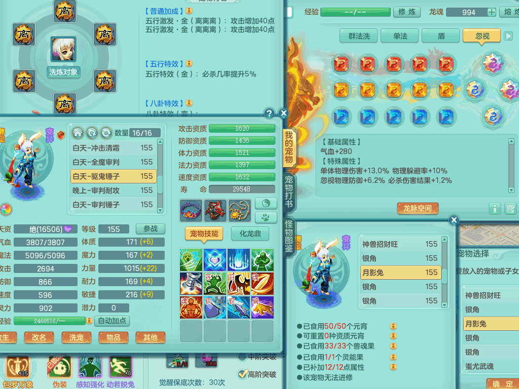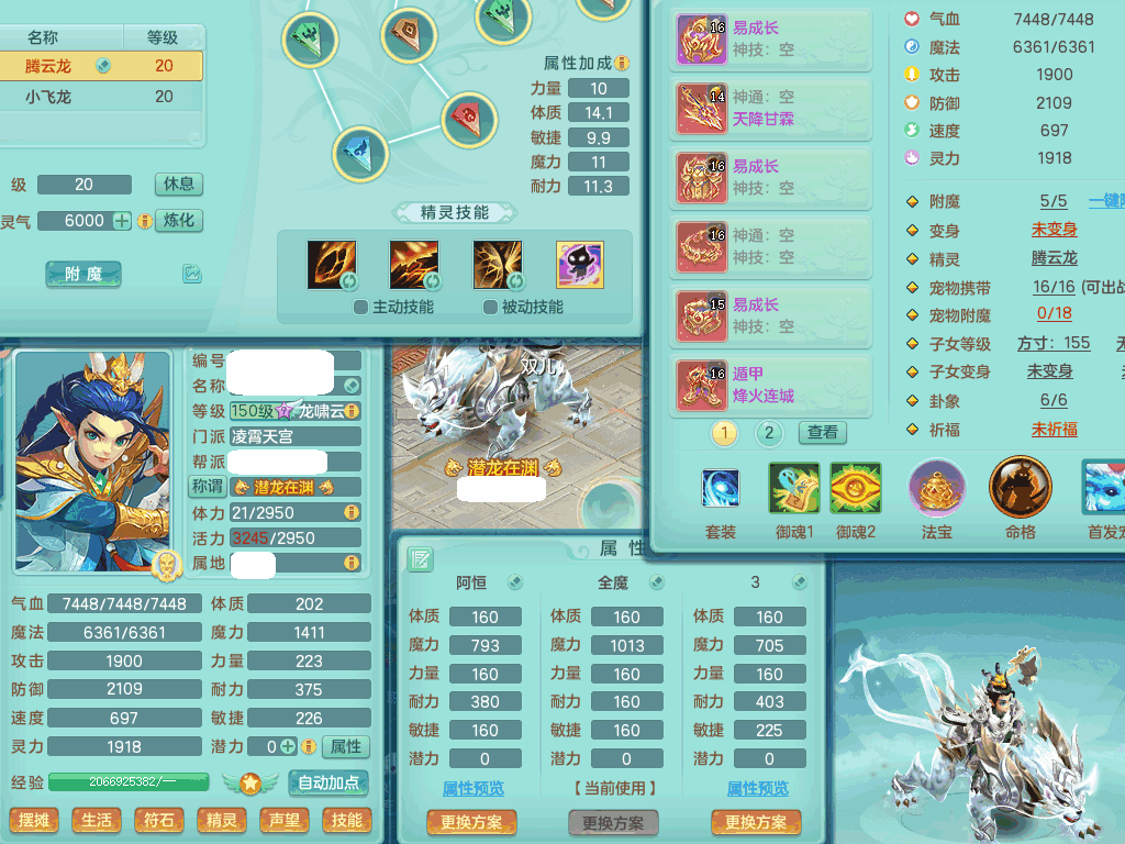 cy8666 【潜龙在渊】彩云追月159男天宫,精灵舞,7龙2内胆神,【12只觉醒,已潜龙】,8位靓号AABBBBCC,1宠皮,2只六技能镜花灵,5特殊(飞花,锤子,剑胆,月光,夺命),6.0基础鼎+70攻+280血,15个格子,13个纯六字,1个五字,25只满果子,仓库还有120个果子,1个神兽内胆,宠排经验修炼成就都在榜,永久称谓,5只坐骑。 2980邮箱