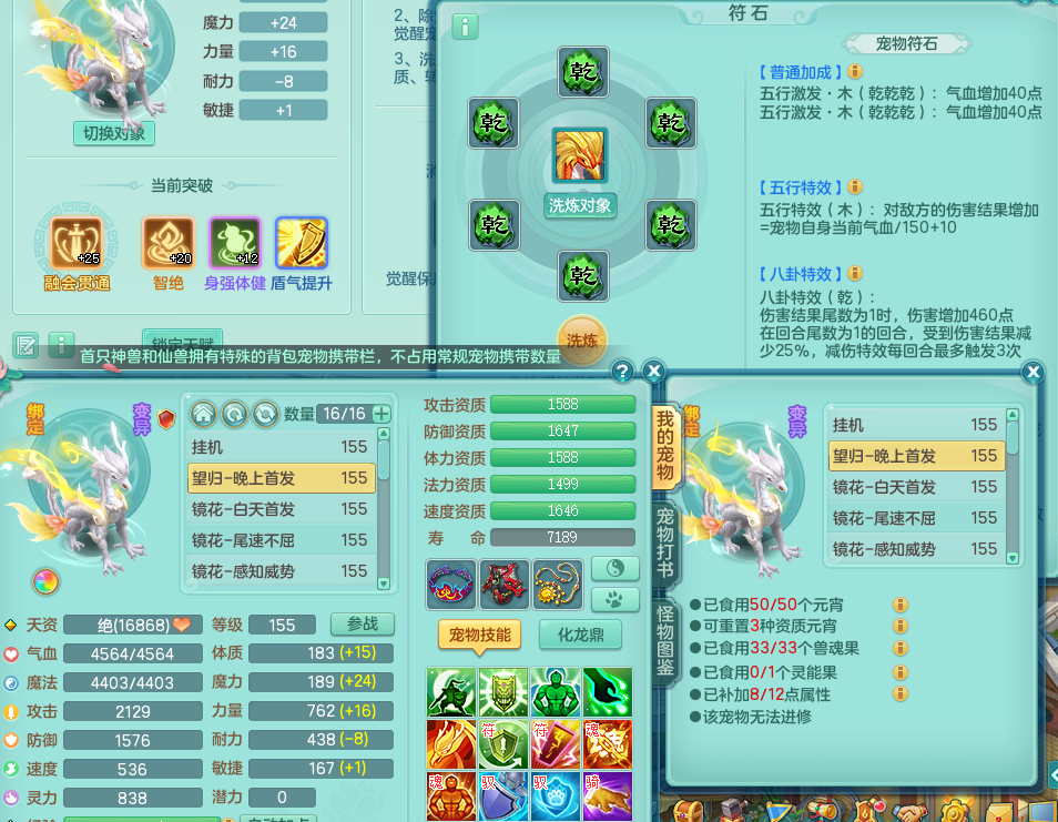 rj8671 【潜龙在渊】 任剑逍遥 159 万兽 双人坐骑 精灵歌 满星穹 14宠物格子 6.0化龙鼎毕业 月卡80天 1龙无内 1内神 特殊(流星、舍身、) 11觉醒 13个真6字 13+满果子 QQ邮箱邮箱不给 战盟7天换