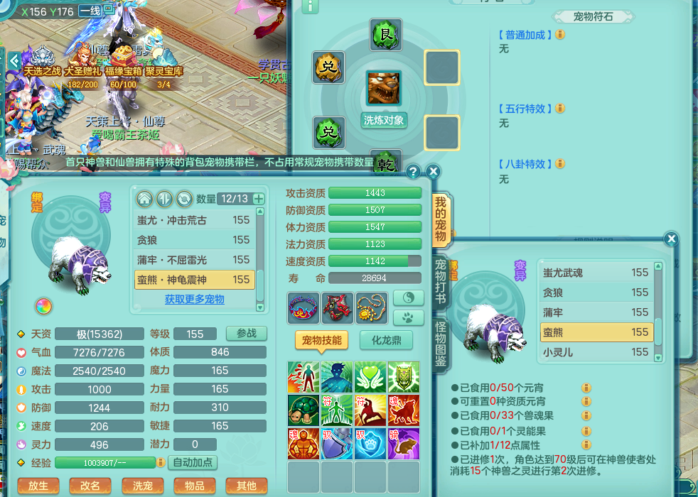 tx8728 天下无双 159 万兽 4位靓号 双飞坐骑 精灵歌 满星穹 化龙鼎 1龙无内 1内神 1宠物皮肤 特殊(藕断、飞花) 4觉醒 2个真6字 7+满果子 163邮箱