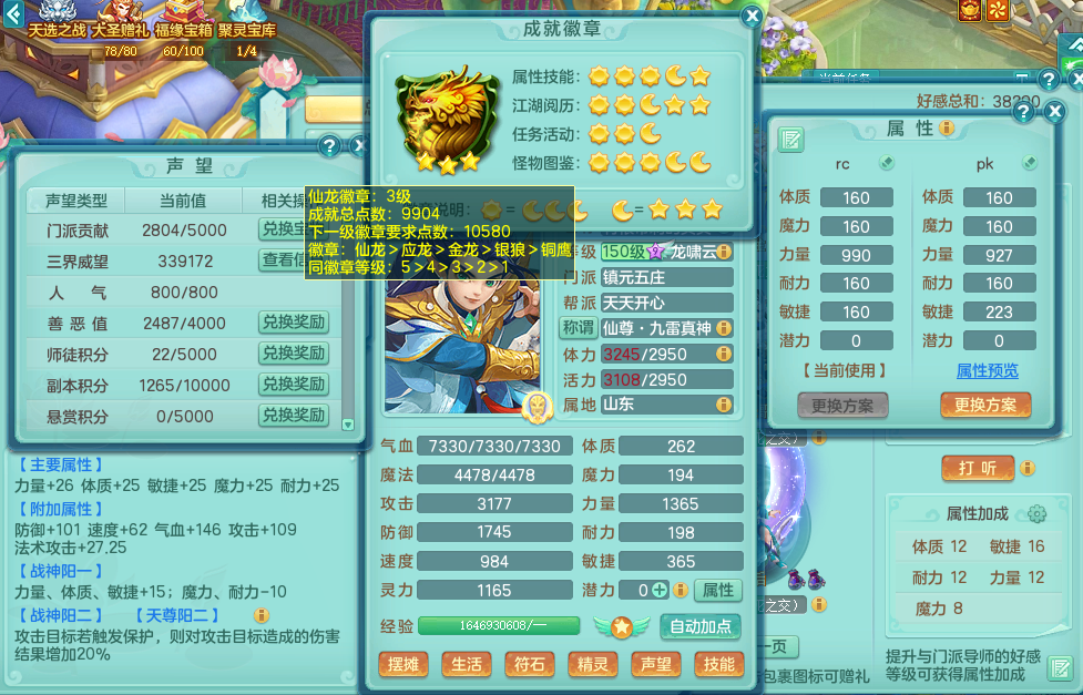 tx8731 天下无双 159 五庄 双飞坐骑 云麾铁骑跟葫芦 精灵歌 满星穹 5.0化龙鼎 64仙兽灵 1内神 特殊(雷利,影袭,噬风斩,勇猛,夺命) 6觉醒 7+满果子 2980邮箱