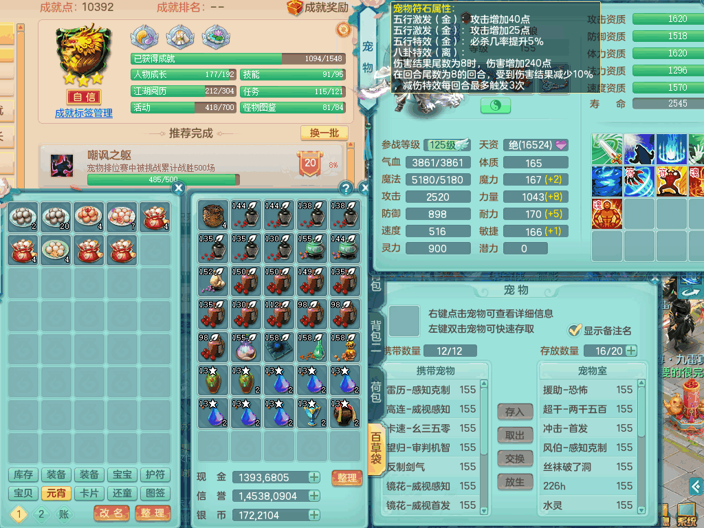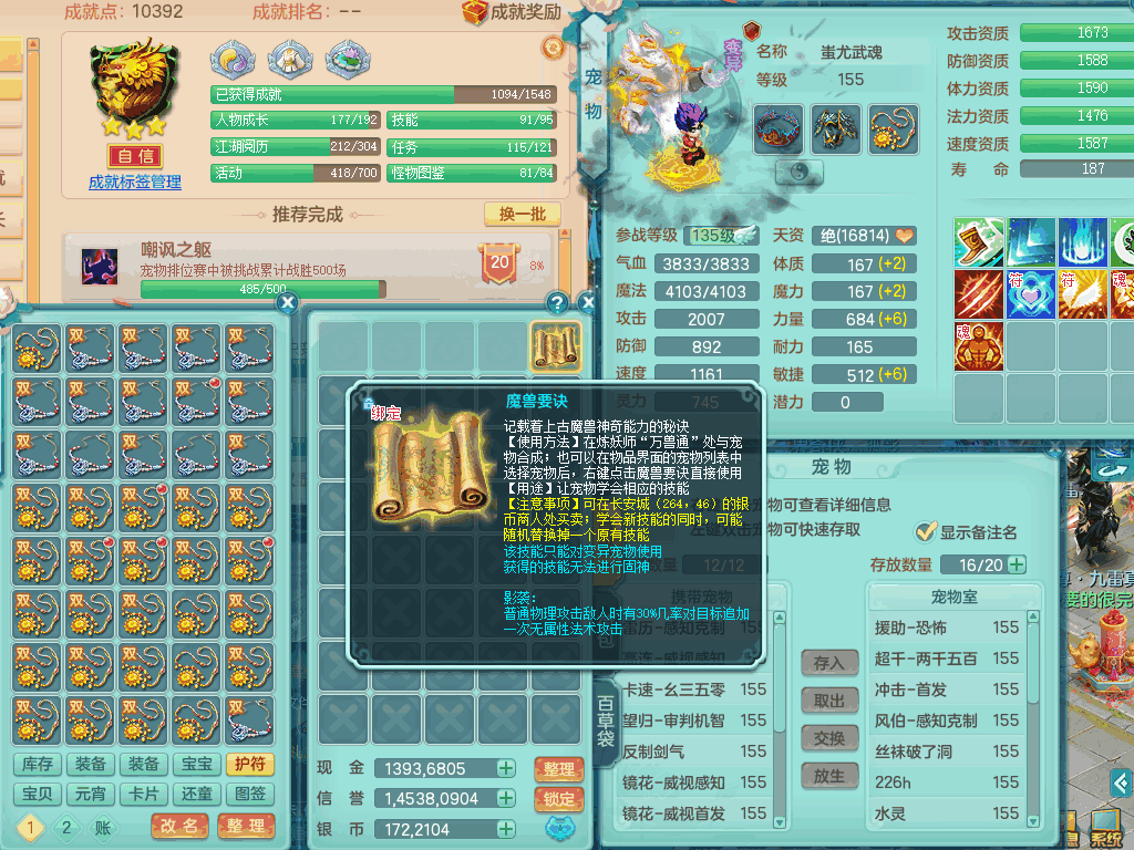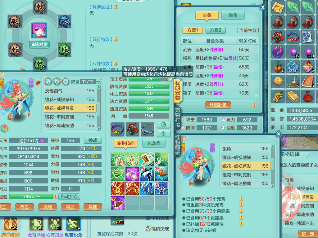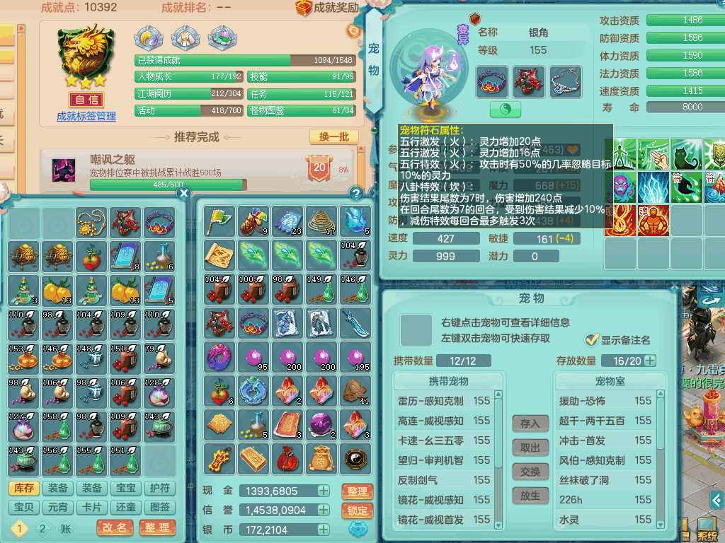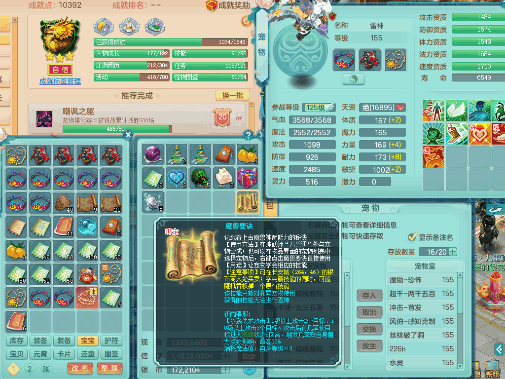 fc8739 风驰电掣159男方寸,精灵舞,3龙(1龙没内),7只觉醒,2特殊(影袭,祈雨),3只六技能镜花灵,愤怒破力式单加53腰带,迅捷四海鞋子,5.5基础鼎,4个纯六字,综合9只满果子,背包29神兽内丹碎片,2个双人坐骑。带4个150奶粉。 QQ邮箱