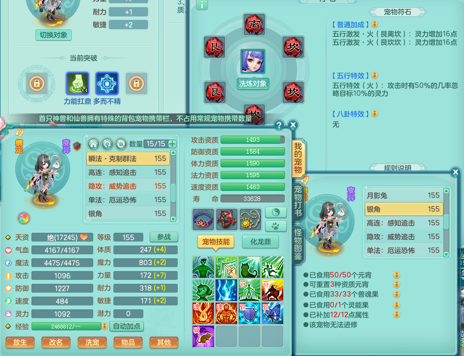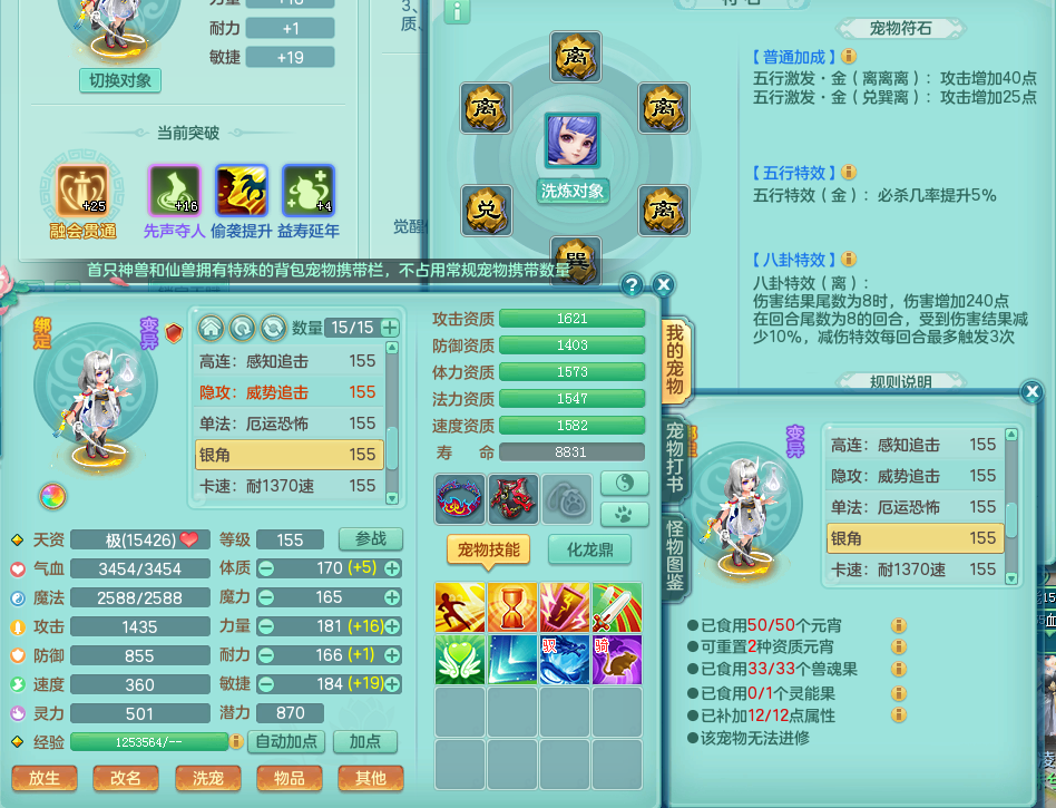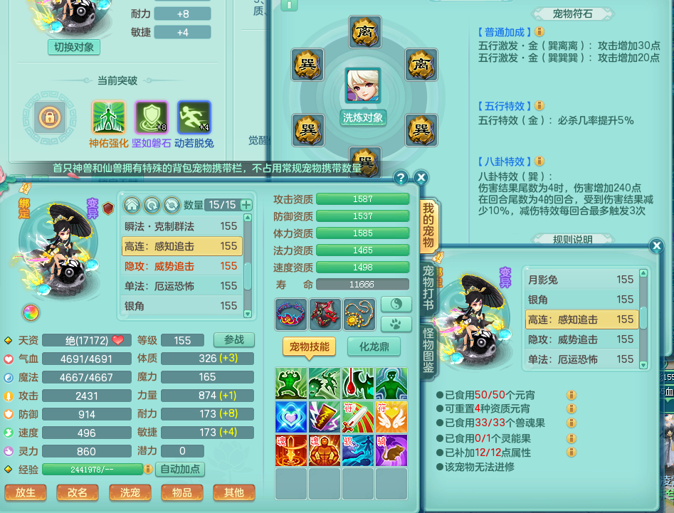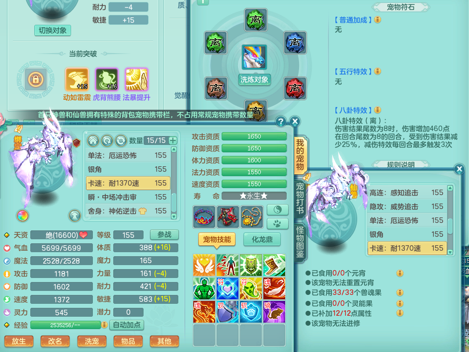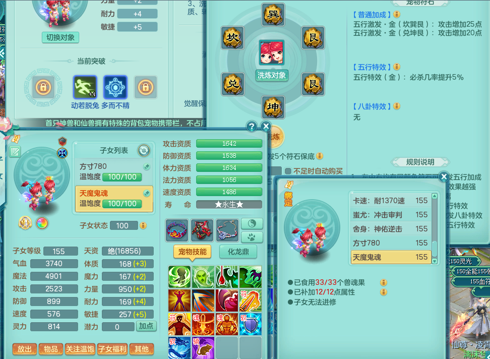 tx8753 天下无双 159 装备毕业龙宫,单加易271项链,单加272满灵神佑项链,迅捷破血双红鞋子,单加Y慈航鞋子,单加Y笑里鞋子,单加Y群体守备头,陆地双人坐骑,精灵舞,满星穹 5.5+70化龙鼎,1内龙,1内神,3觉醒,2镜花,2特殊(舍身、禁锢)加上孩子14个满果子(3孩子:方寸、天魔、龙宫),很多单加双红装备,2套符石,全门派可玩,小伙伴解锁169个,同账号159FC+153封WZ,2980邮箱304天换绑