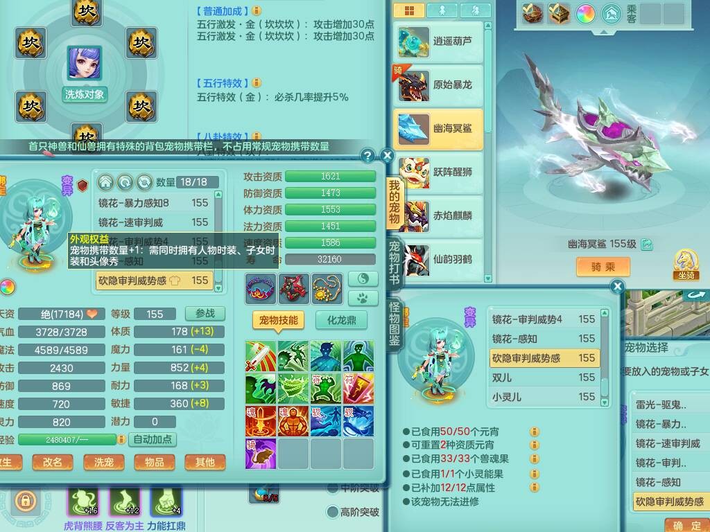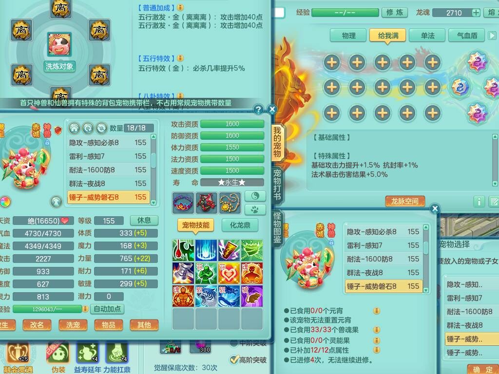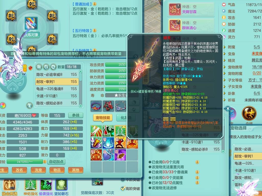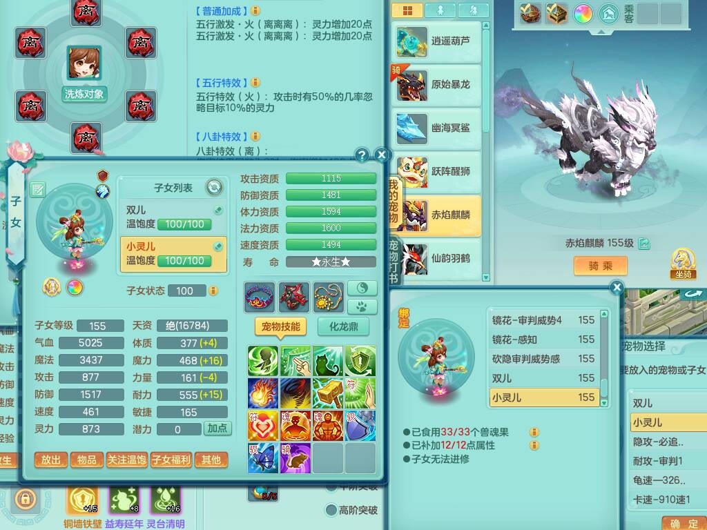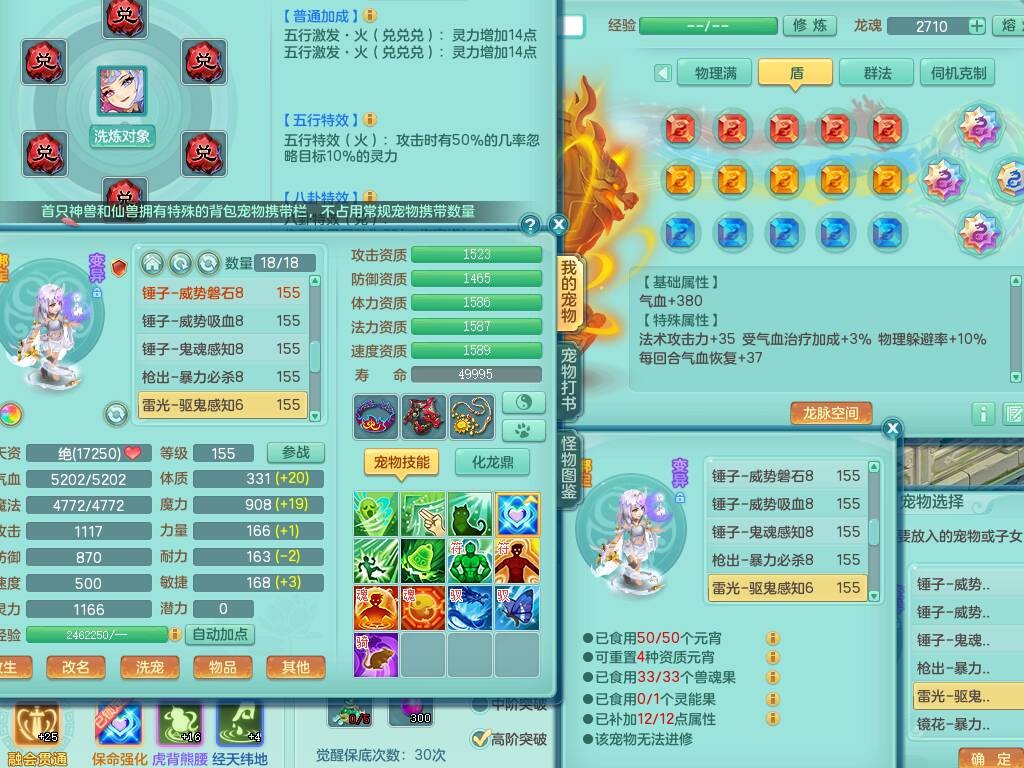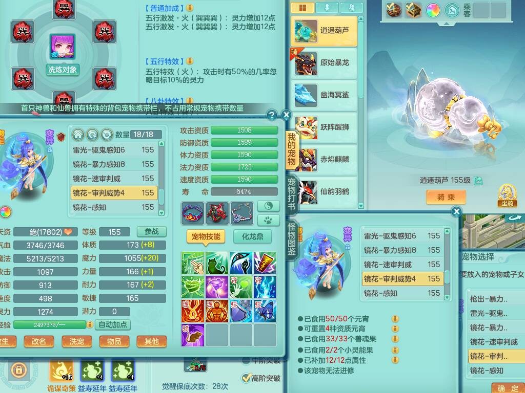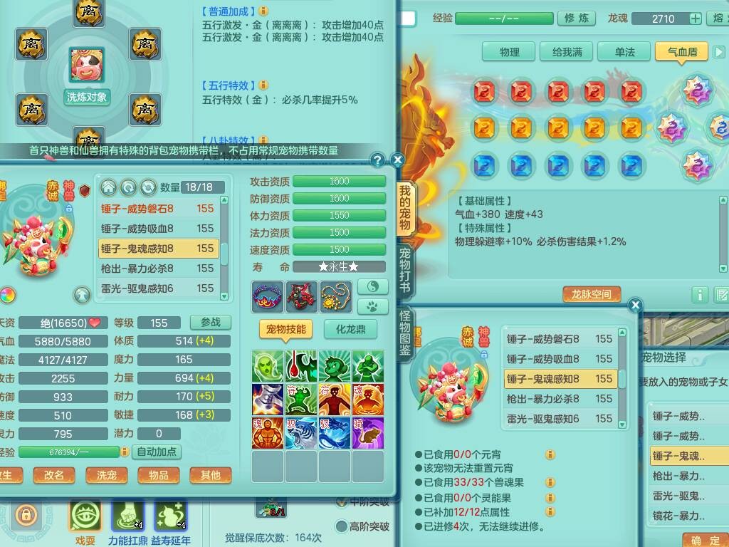 sn8757 【潜龙在渊】 少年游159女普陀,精灵舞,8龙1龙皮,4内胆神,2破镜,【13只觉醒,已潜龙】,4位靓号不含4,3宠皮,5只六技能镜花灵,2特殊(雷光,怒破),愤怒五特,5.5基础鼎+70攻+280血,15个格子,26个纯六字,27只满果子,宠排经验修炼成就都前排,永久称谓,9个坐骑,暴龙泰坦+西瓜冰,冰晶庭院,带134天月卡,3.2万金币,216万神武币。带3个150奶粉。 2980邮箱