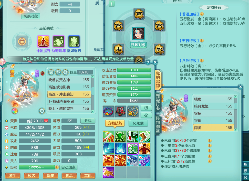 hh8773 花好月圆 159 方寸 4位靓号 双飞坐骑 精灵舞 满星穹 5.5化龙鼎 4内龙 3内神 7宠物皮肤 4特殊(影袭、夺命窃魂、怒破九霄、荒古破击) 7觉醒 7个真6字 30+满果子 QQ邮箱