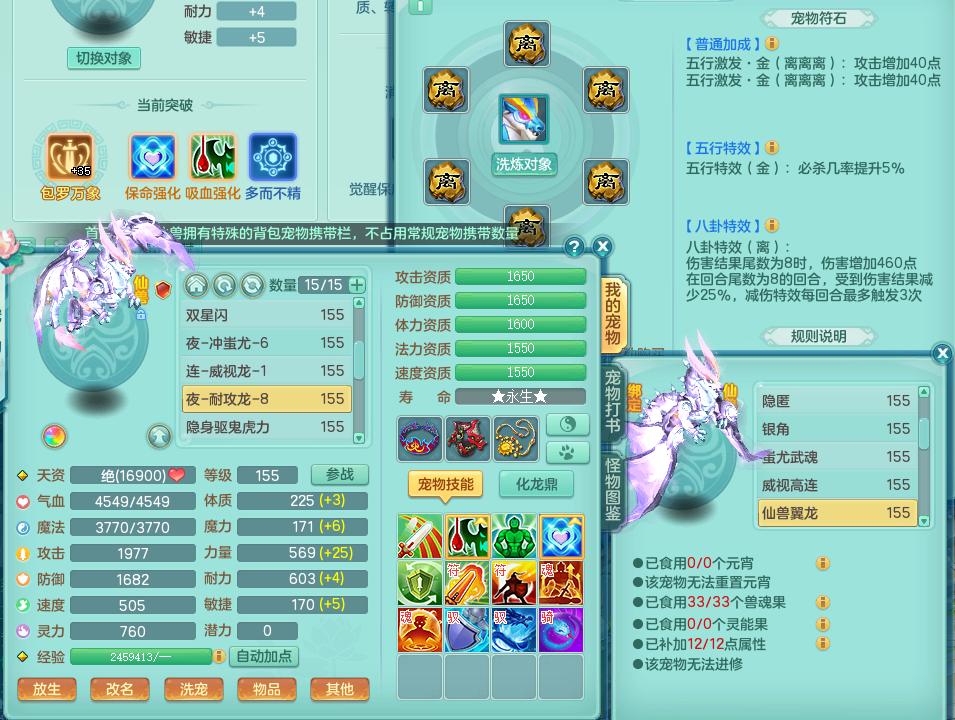 hh8777 花好月圆 159 无量 4位靓号 双飞坐骑 精灵悟 满星穹 5.5化龙鼎 月卡151天 特殊(双星、)3内龙 2内神 2宠物皮肤 7觉醒 7个真6字 14+满果子 2980邮箱