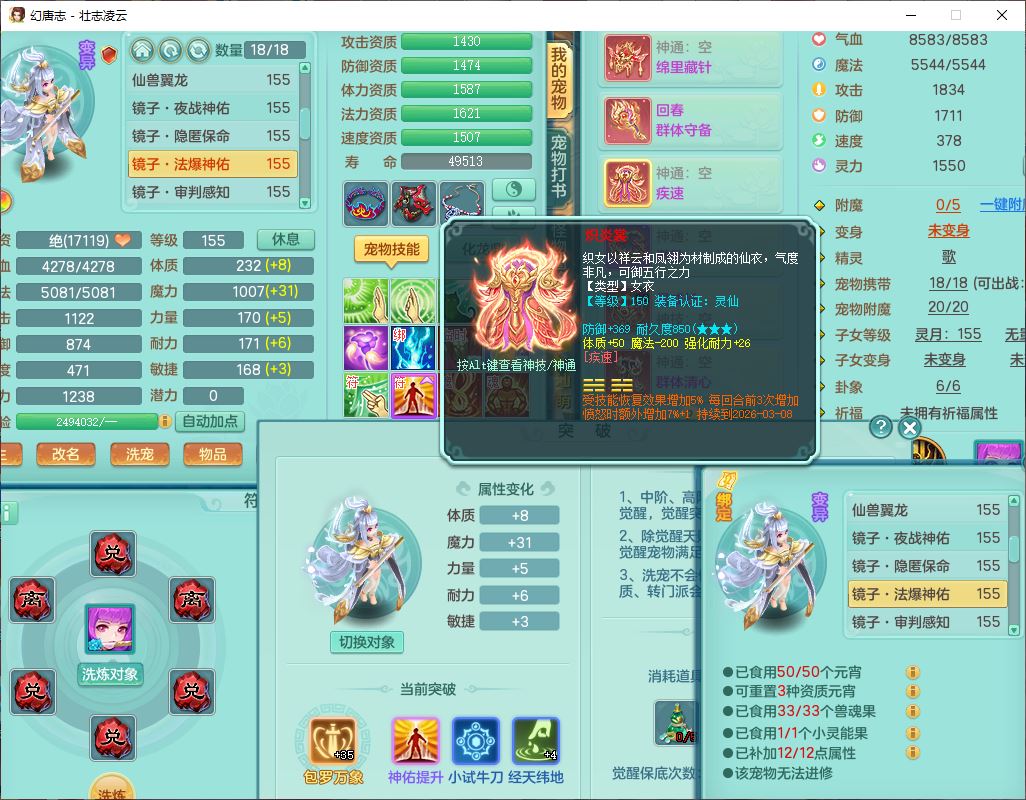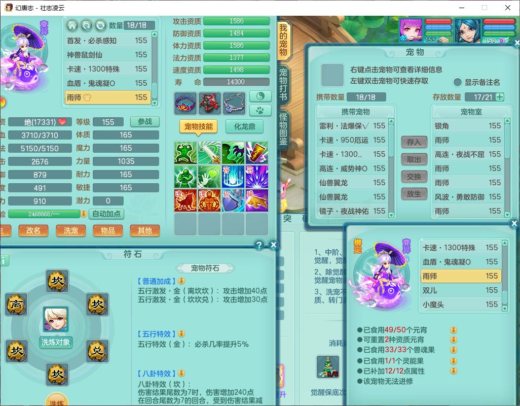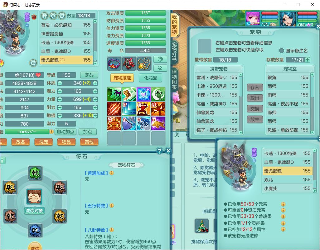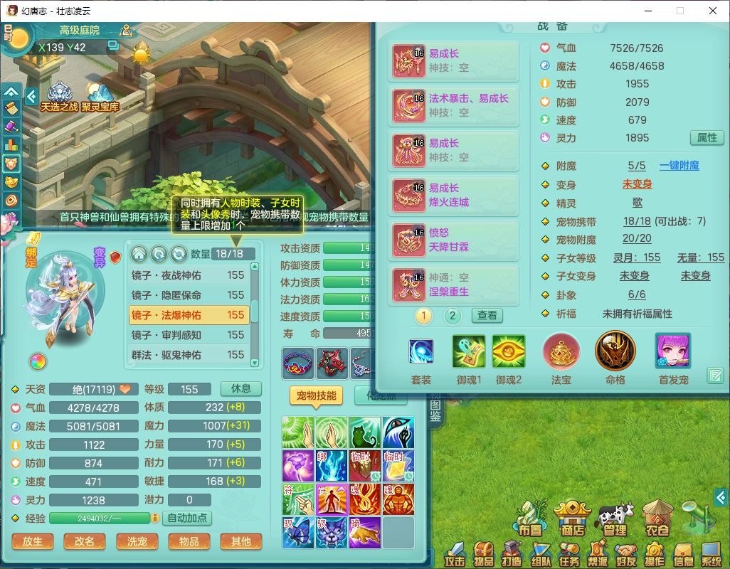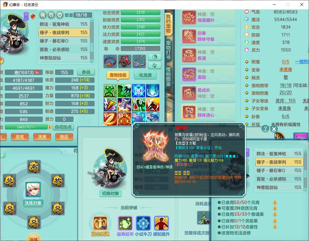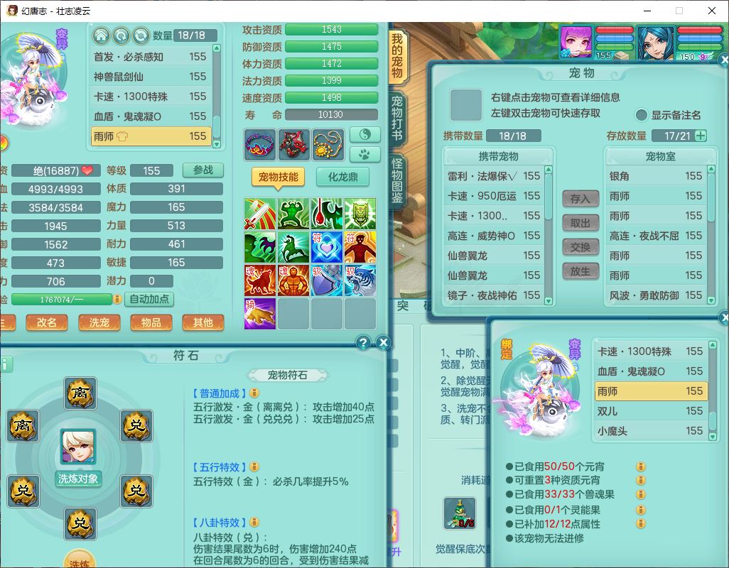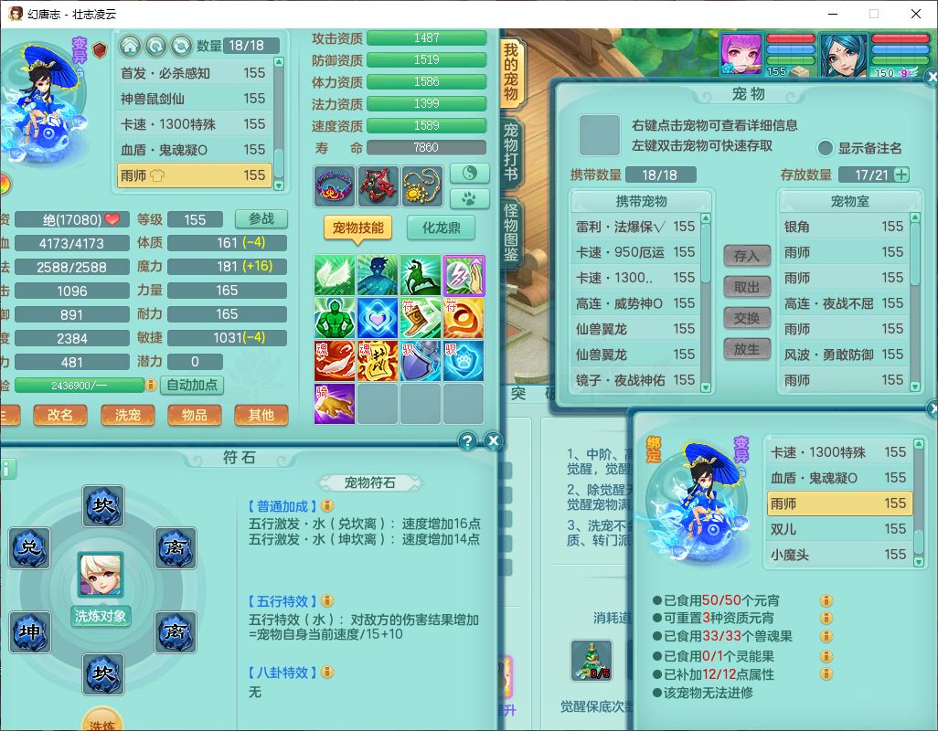 zz8789 壮志凌云159女天宫【准潜龙号,差5只宝宝衣服)精灵歌,6龙(换,2破境)1内4六技能镜花9特殊(破碎、羽袭、剑胆、怒破、舍身,虎虎、登云、以战、祈雨兽决),10觉醒3宠皮14六字1五字8四字30只满果子,9红装备,法爆Y武器,275Y烽火项链,愤怒四海腰带,回春群体守备武器,鼎5.0+70+280、法爆8.7,149天月卡,永久头饰、背饰、精灵皮肤,8坐骑(1双人飞行) 163邮箱