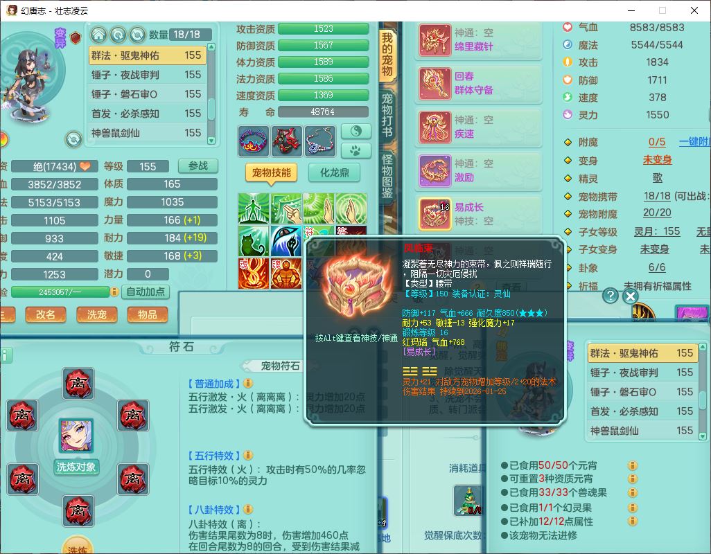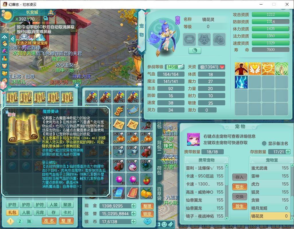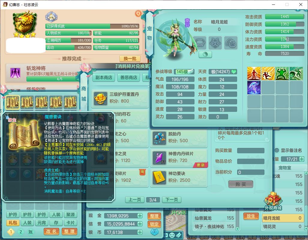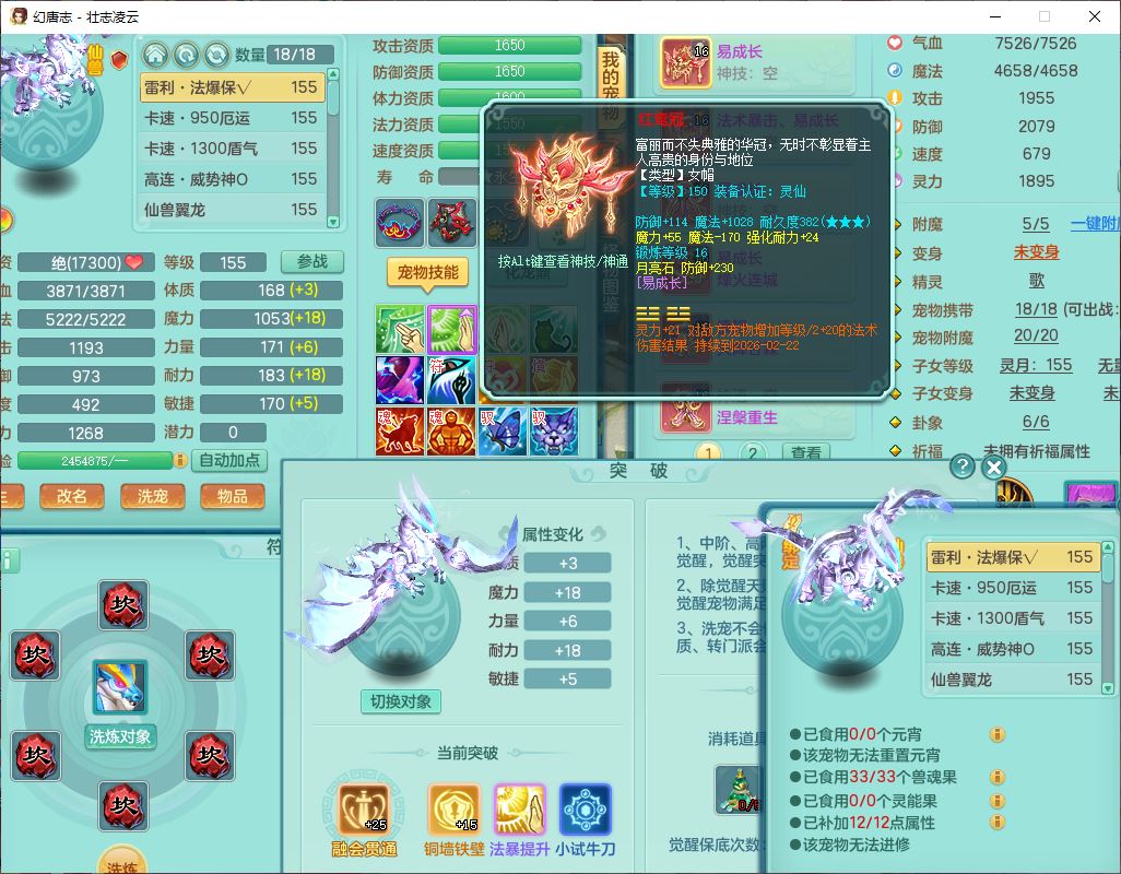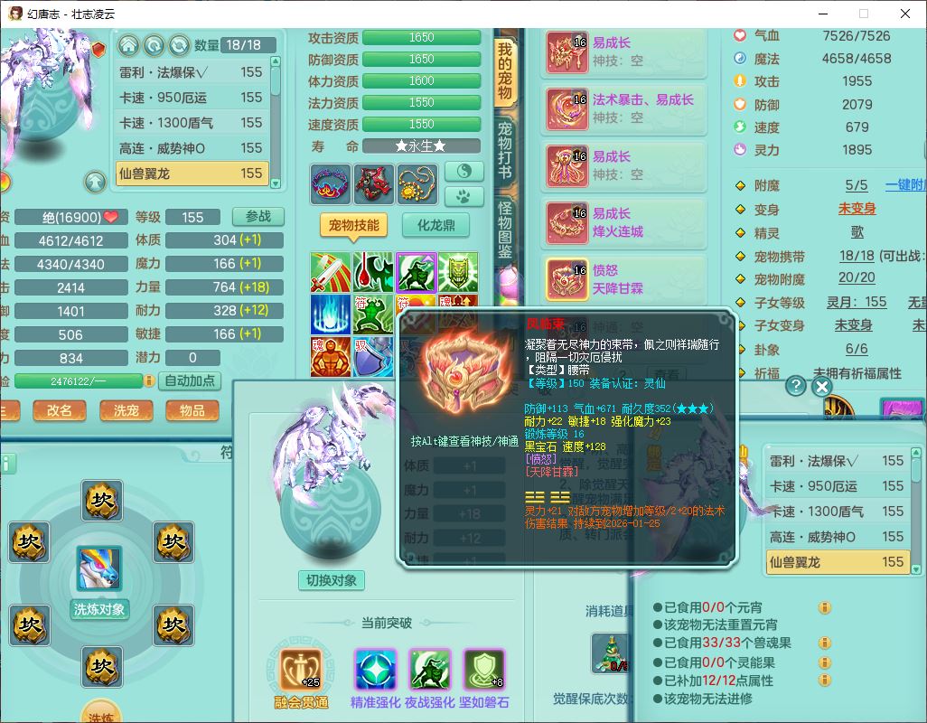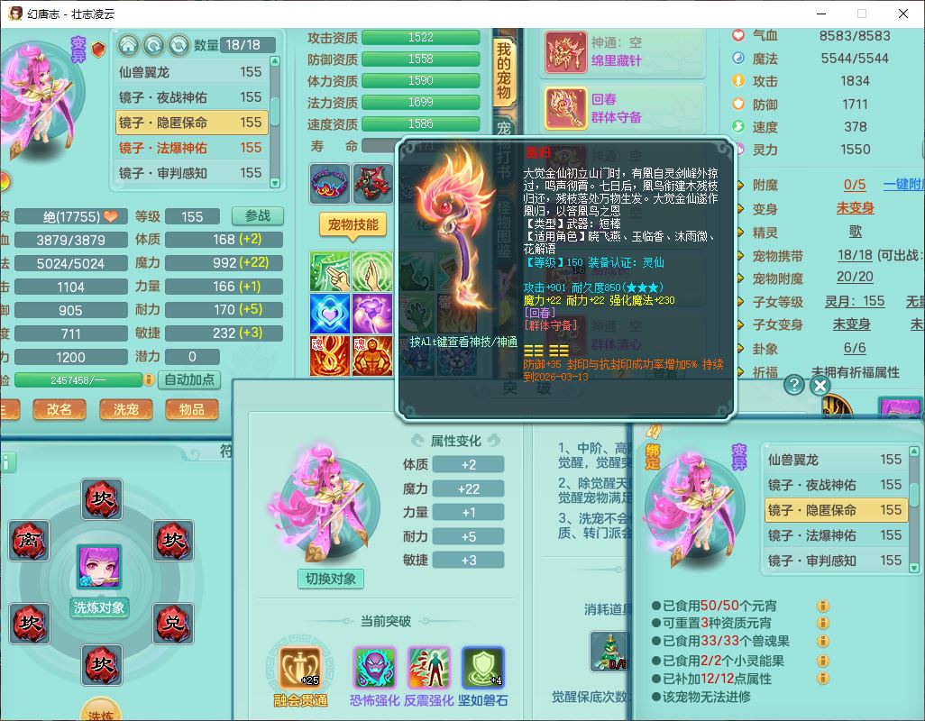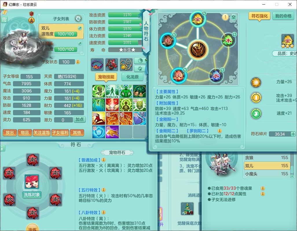 zz8789 壮志凌云159女天宫【准潜龙号,差5只宝宝衣服)精灵歌,6龙(换,2破境)1内4六技能镜花9特殊(破碎、羽袭、剑胆、怒破、舍身,虎虎、登云、以战、祈雨兽决),10觉醒3宠皮14六字1五字8四字30只满果子,9红装备,法爆Y武器,275Y烽火项链,愤怒四海腰带,回春群体守备武器,鼎5.0+70+280、法爆8.7,149天月卡,永久头饰、背饰、精灵皮肤,8坐骑(1双人飞行) 163邮箱