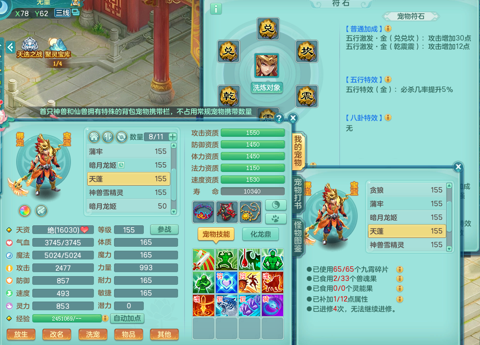 tx8801 天下无双 157 万兽 单人坐骑 4.5化龙鼎 bb还不错 带一个156+奶粉 163邮箱