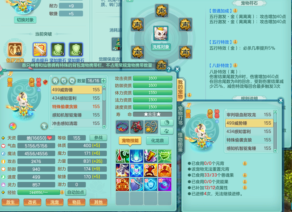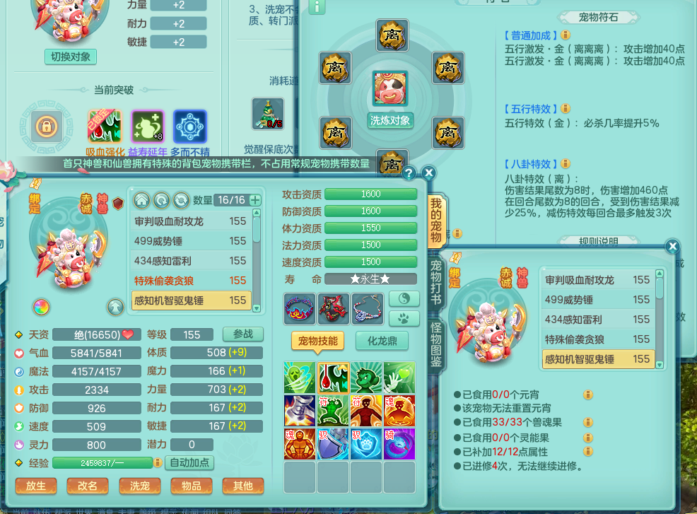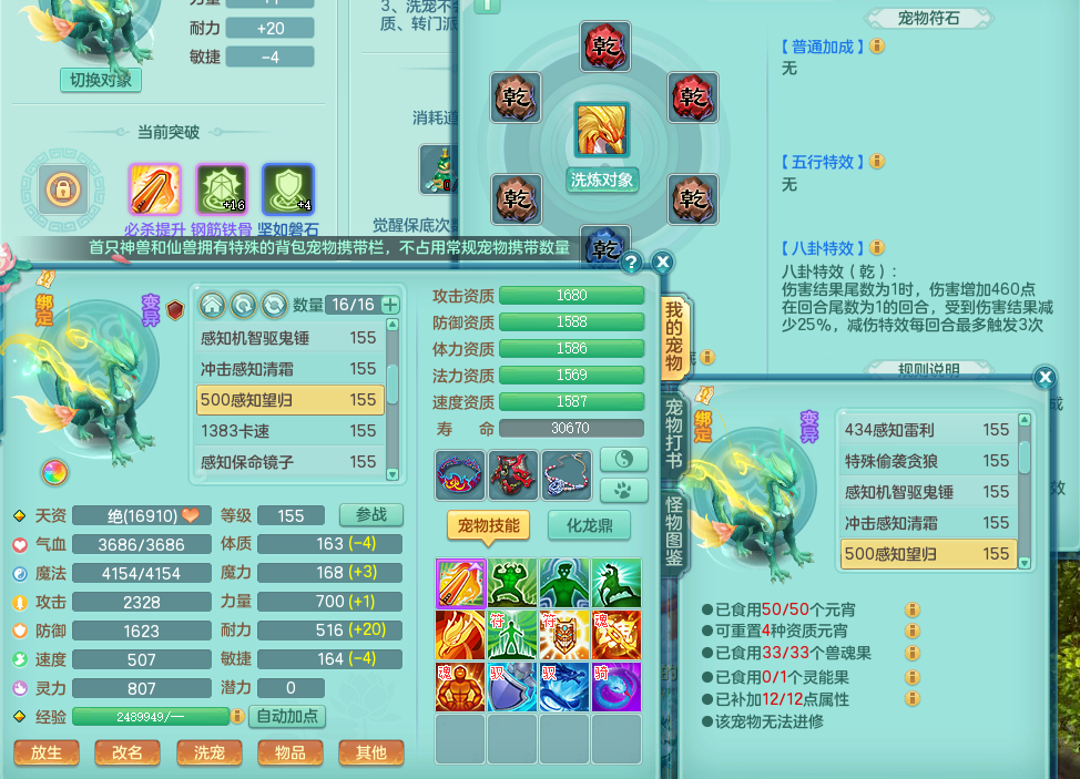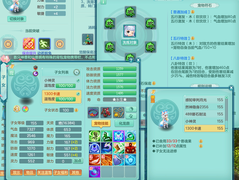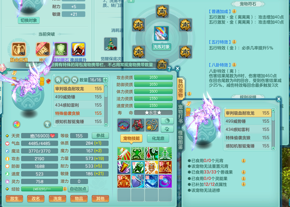 zs8830 【潜龙在渊】 159 女 五庄 暴龙坐骑 精灵舞 满星穹 5.5化龙鼎毕业 月卡160天 1内龙 2内神 5宠物皮肤 特殊(月光、生命、清霜、夺命、噬风斩、雷利、战争、登云 )9觉醒 10个真6字 26+满果子 QQ邮箱