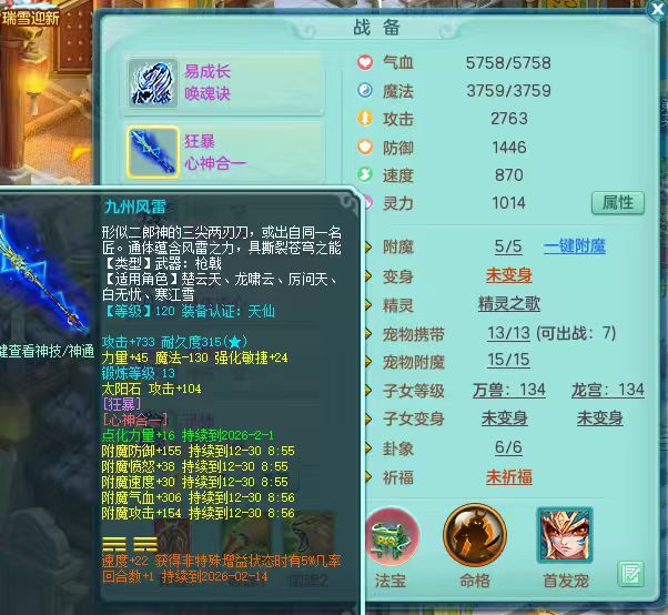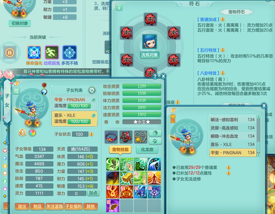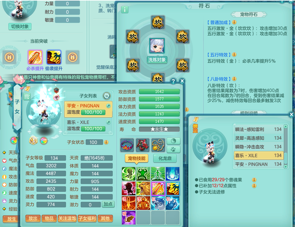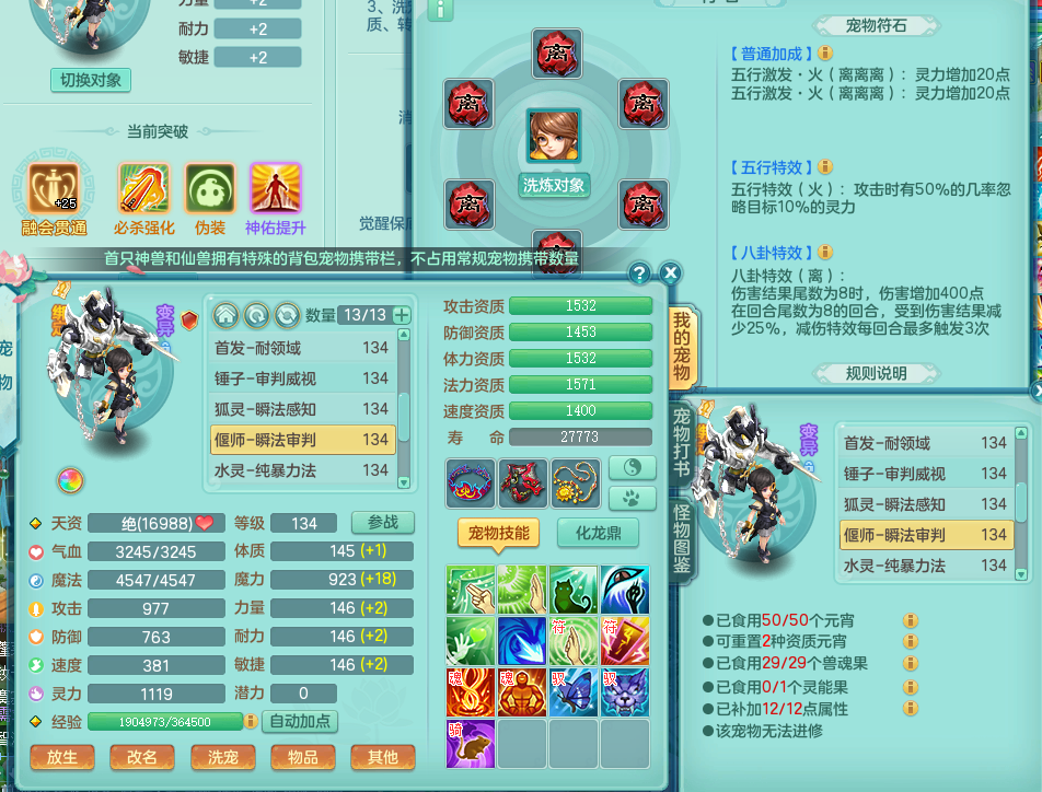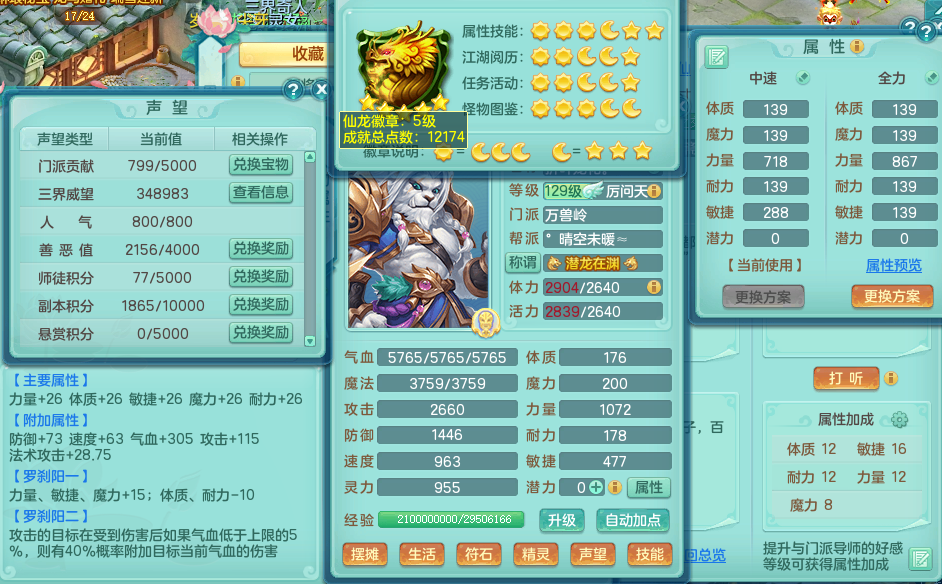 jx8854 【潜龙在渊】锦绣河山 129万兽 双人坐骑 精灵歌 满星穹 。鼎4.0基础。7.5法爆 1龙无内 1内神 13个纯6字,全部离坎,就一个法师是兑。10觉醒。身上毕业辅助装备。有效双红。 QQ邮箱