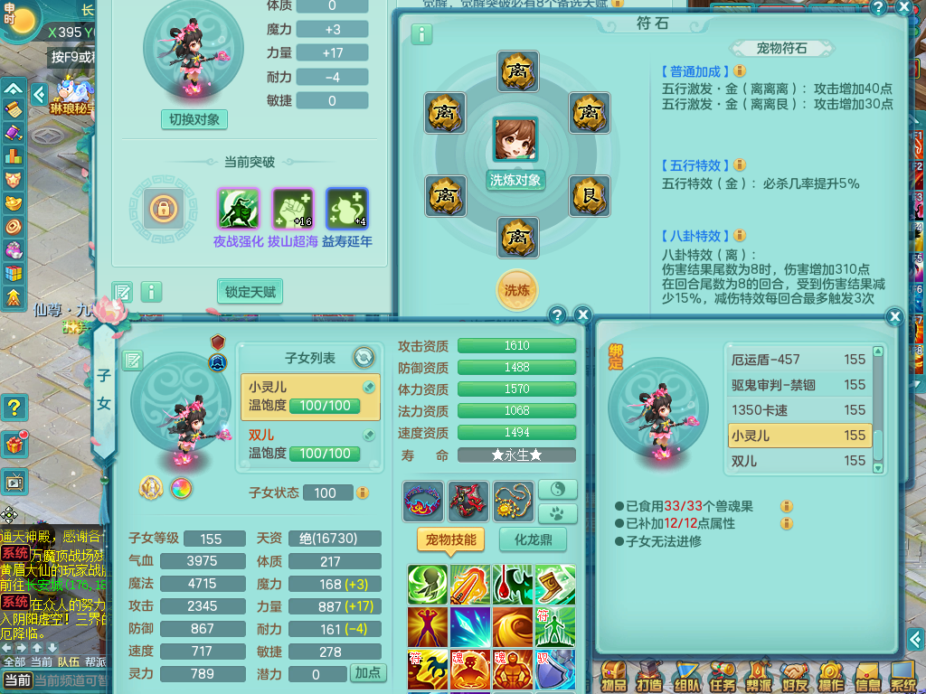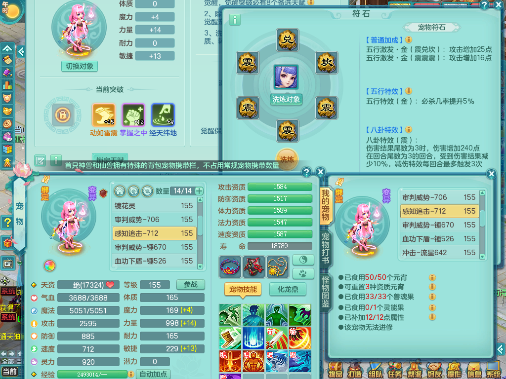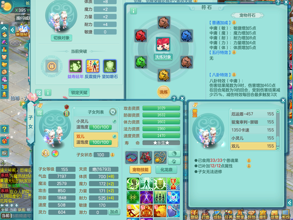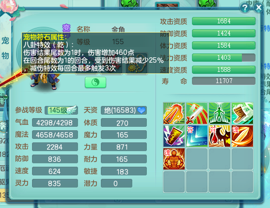 qq8856 七窍玲珑 159 女万兽 双飞坐骑 精灵舞 满星穹 5.0鼎 1龙(无内)3内神 2宠物皮肤 3特殊(流星,藕断,禁锢)5觉醒 3个真6字 10+满果子 2980邮箱