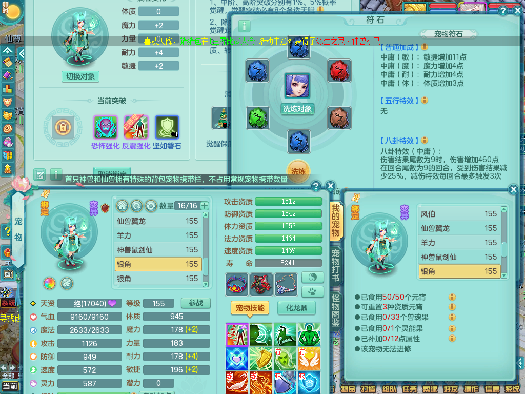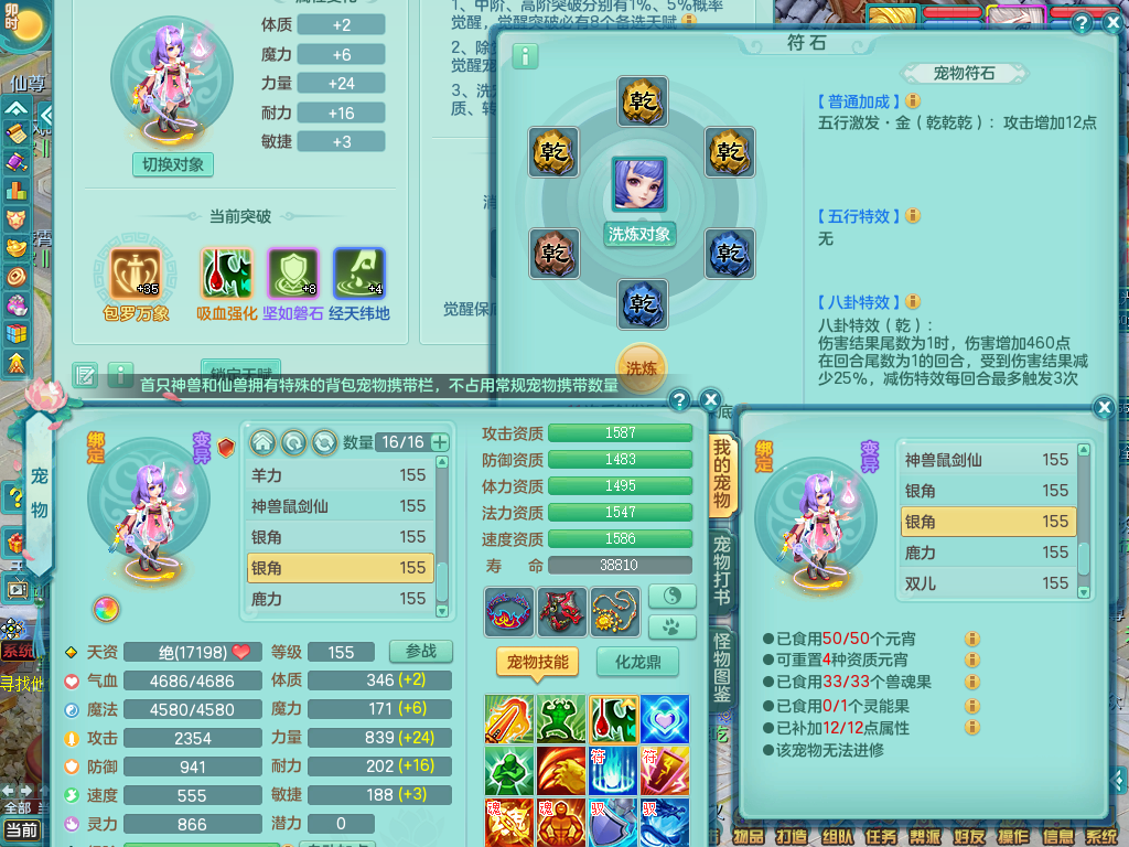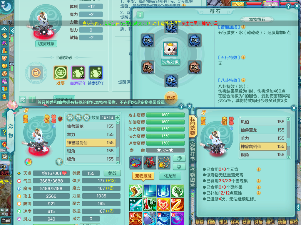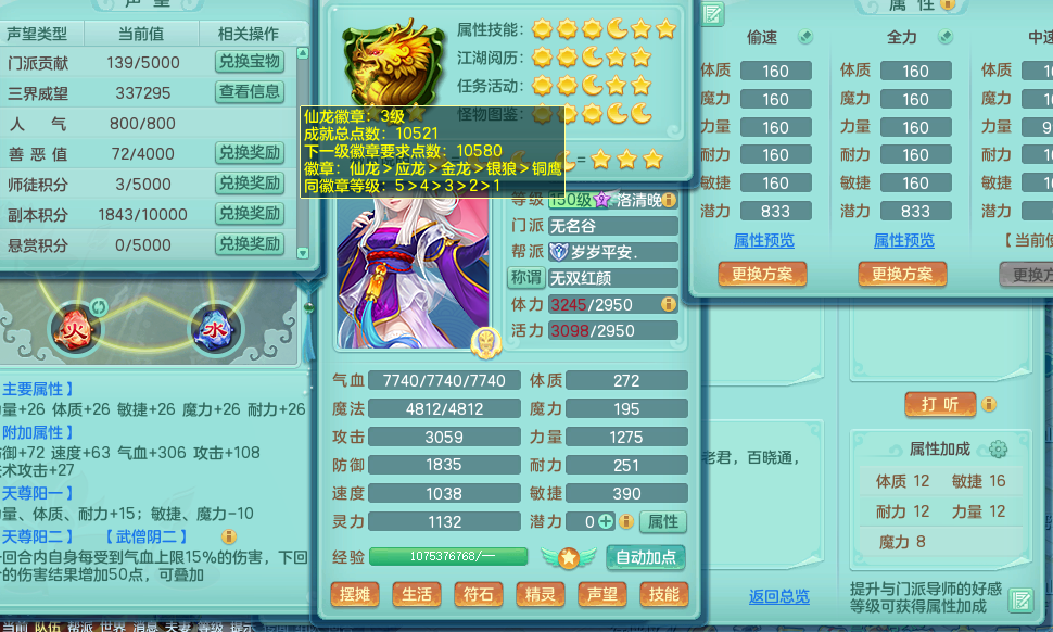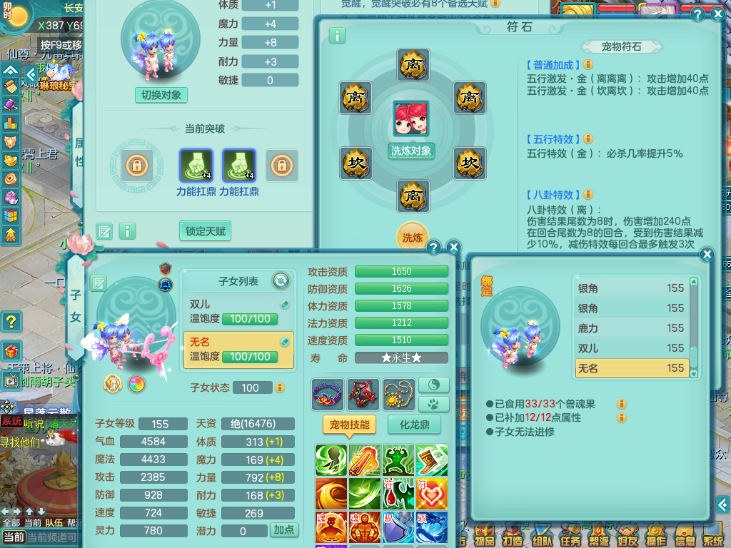 qq8864 七窍玲珑 159 无名 双飞坐骑 精灵舞 满星穹 16格子 4.5化龙鼎 月卡131天 3内龙 4内神 6镜子 2宠物皮肤 特殊(雷利、虎虎、噬风斩、舍身、流星) 12觉醒 3个真6字 16+满果子 2980邮箱