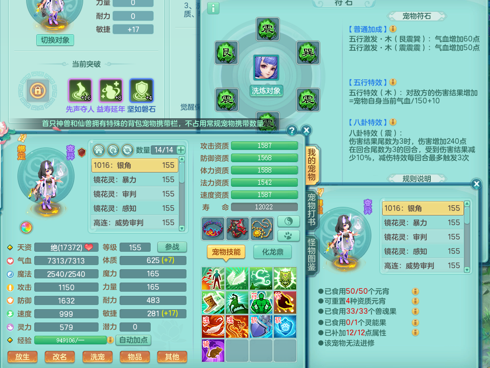 zz8865 壮志凌云 159 方寸 单人坐骑 精灵舞 满星穹 5.5化龙鼎 月卡105天 1内龙 1内神 特殊(勇猛)13觉醒 13个真6字 2个五字 17+满果子 2980邮箱
