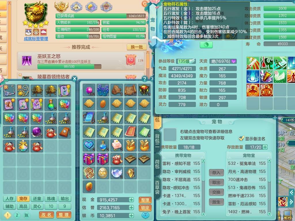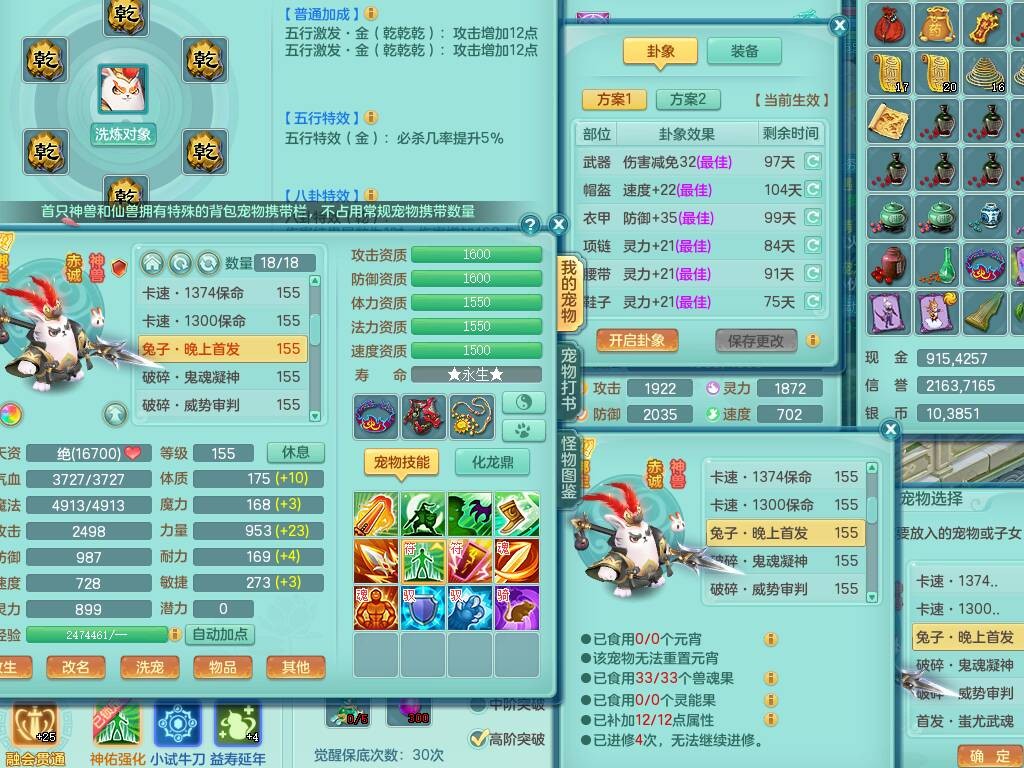 tx8892 天下无双159男法天宫,精灵歌,6龙3内胆神,1破镜,【21只觉醒,已潜龙】,4位靓号,11宠皮,1只六技能龙姬,5只六技能镜花灵,3特殊(翻江,月光,舍身),鸡腿四海单加武器,易成长五雷头,双法缭,法缭单加51衣服,法缭鞋子,263易成长武器,可玩物理,923必杀武器,934易成长单加武器,双红躲避破血单加54衣服,神佑单加52项链,指挥慈航单加56腰带,可玩辅助六特,愤怒晶清单加腰带,5.5基础鼎+70攻,280血,15个格子,19个六字,27只满果子,宠排在榜,经验修炼成就都在榜,永久称谓,完美染色暴龙泰坦+黑白西瓜冰+火焰之力武器皮肤,带184天月卡。2980邮箱