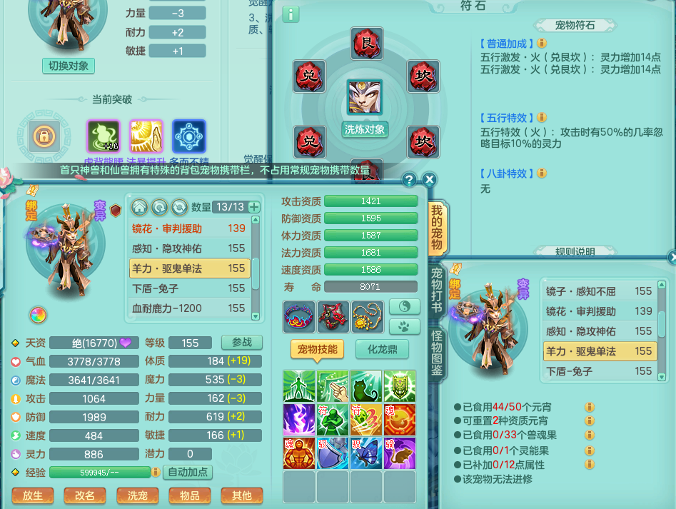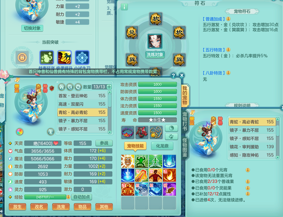 tx8903 天下无双 159 万兽 双人坐骑 精灵歌 满星穹 5.0化龙鼎 1内神 19仙兽灵 特殊(藕断、双星、祈雨、登云) 1觉醒 1个真6字 5+满果子 2980邮箱