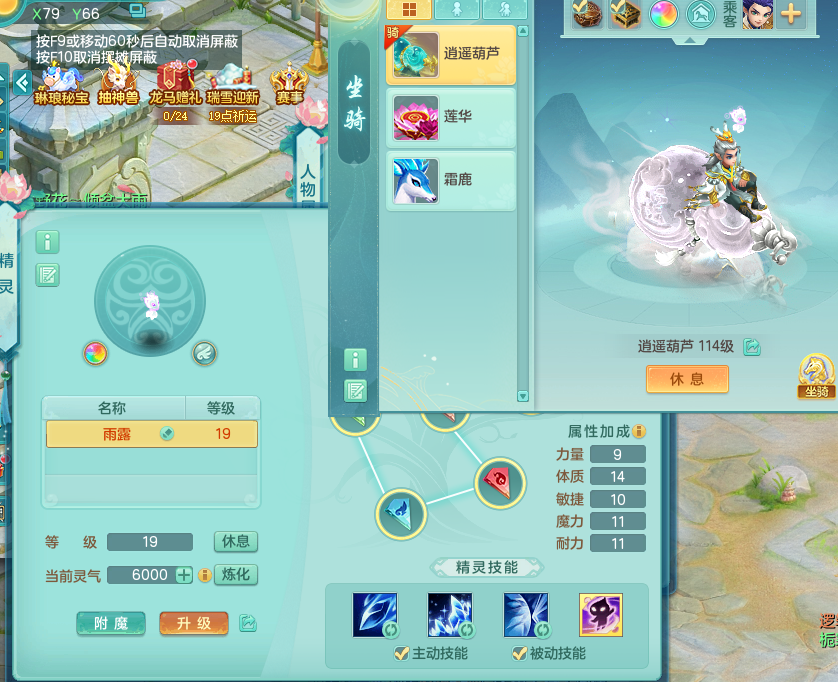 qf8960 清风明月 109天宫 3.0化龙鼎 3内龙 1内神+29神兽碎片 综合7+满果子 双飞坐骑 精灵舞 2980邮箱