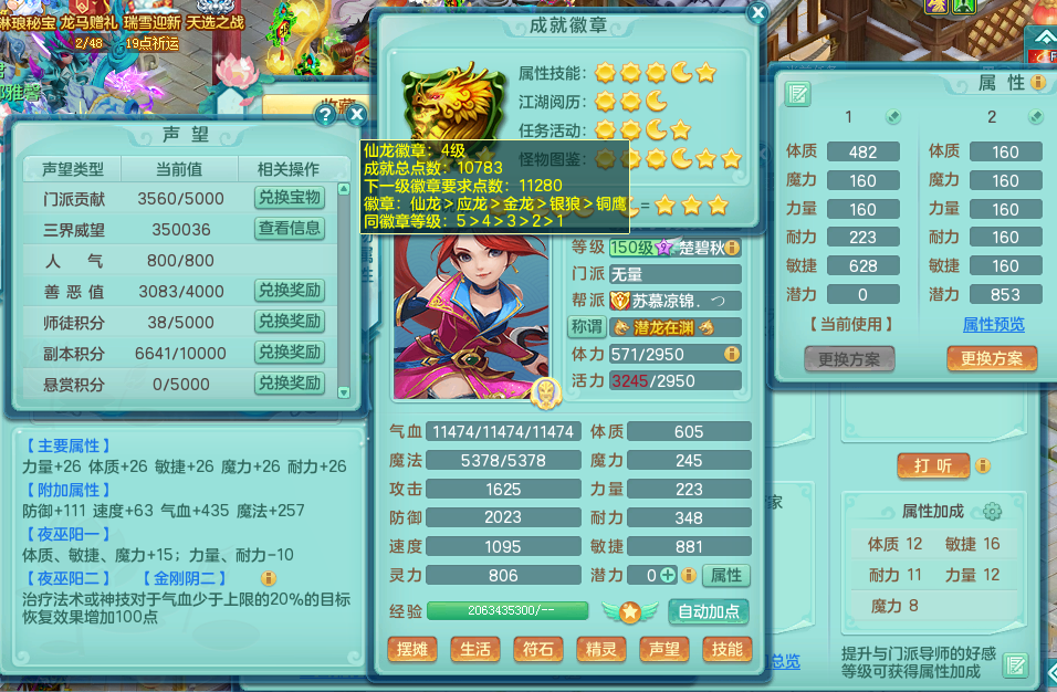 jt9049 【潜龙在渊】九天揽月 159无量 幸运天地武器 强壮群净衣服 易化险项链 愤怒心神腰带 5.5化龙鼎毕业 2龙1内 1内神 13觉醒 12个真6字 14+满果子 特殊(清爽,飞花,上善,雷利) 双飞坐骑 精灵梧 满星穹 2980邮箱