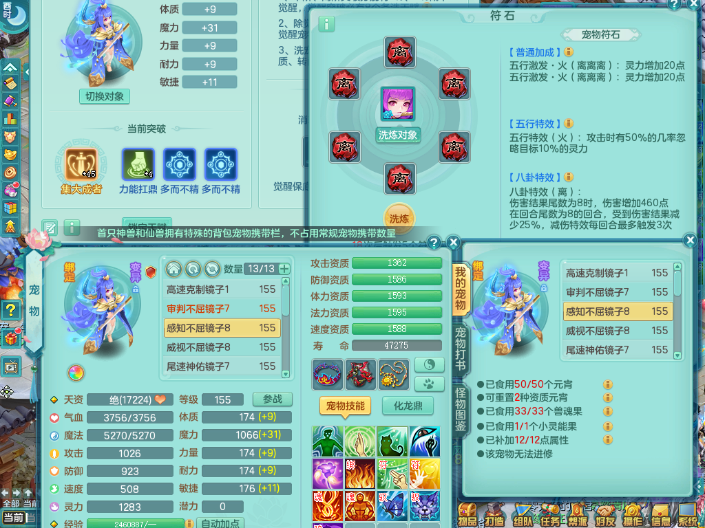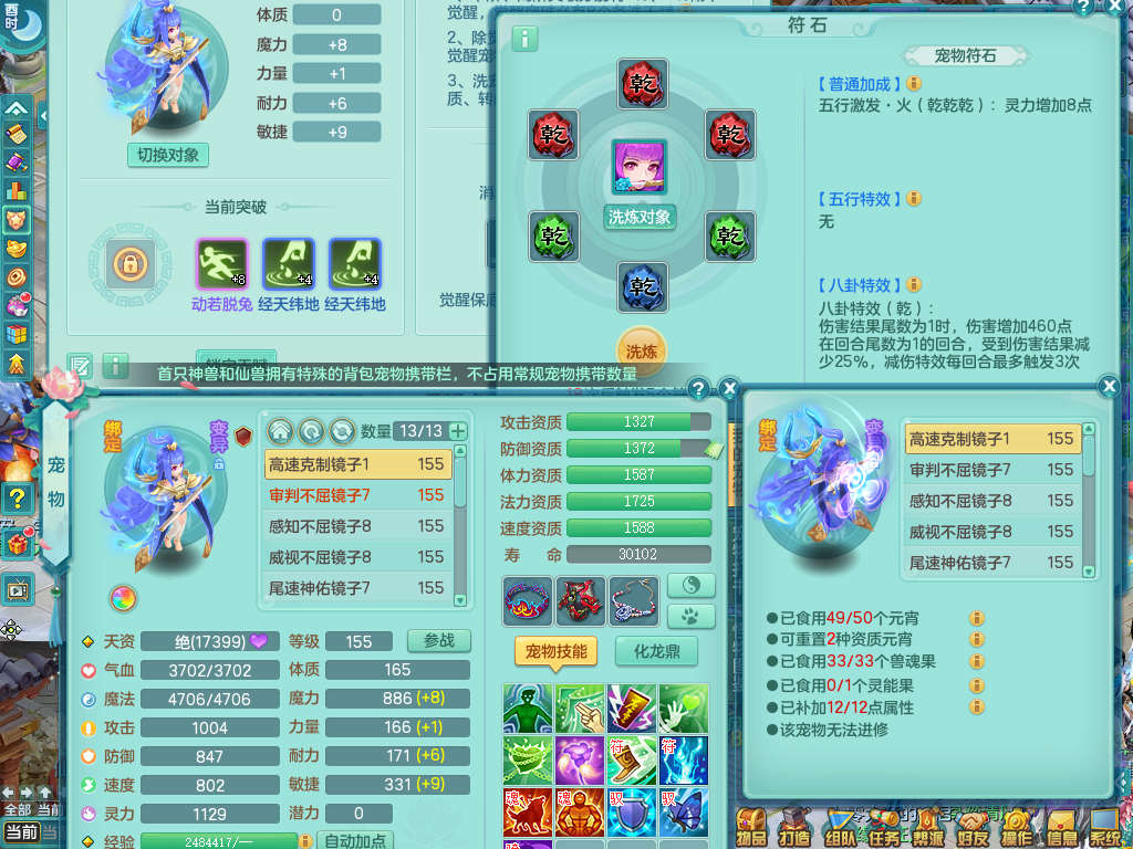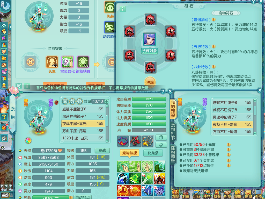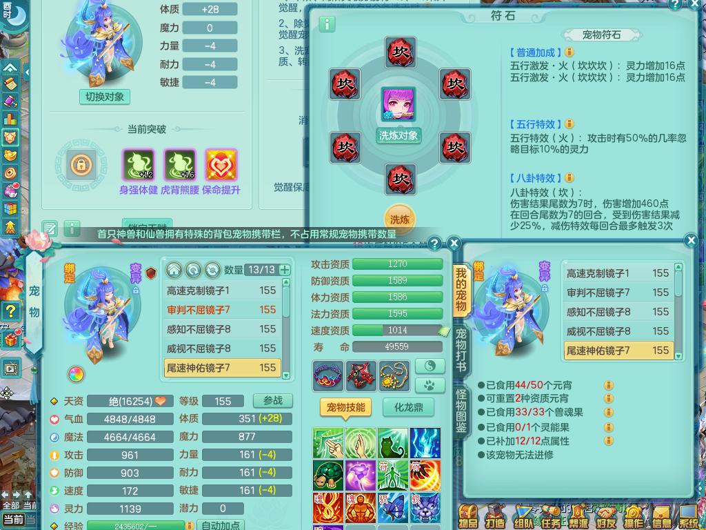 tx9057 天下无双 准潜龙 159 天魔 差3个主符石潜龙 6.0化龙鼎毕业+5.5化龙鼎+8.7法爆 20仙兽灵 1内神 5镜子 特殊(雷光、上善、流星) 7觉醒 10个真6字 15+满果子 双人坐骑 精灵舞 满星穹 2980邮箱