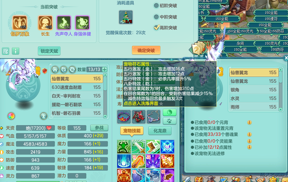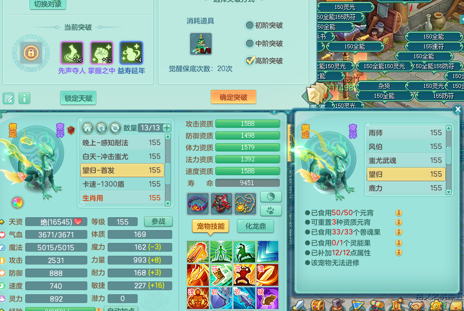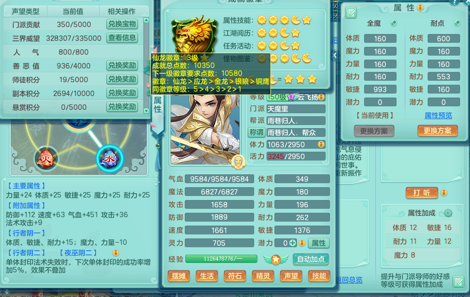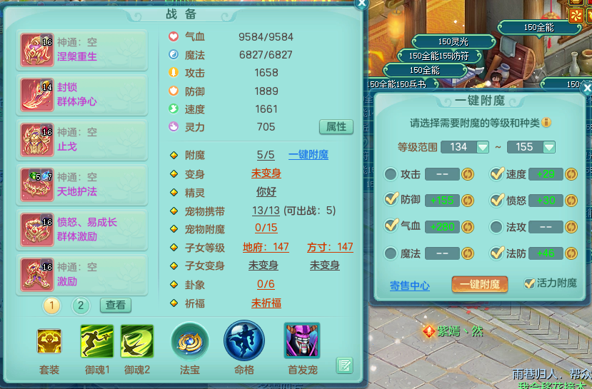 jn9180 今年勇 159 天魔 4位靓号 封锁群净武器 易愤怒群激励腰带 5.0化龙鼎 2龙1内 43神兽碎片 1宠物皮肤 特殊(羽袭、逆龙 )4觉醒 7+满果子 双人坐骑 精灵舞 满星穹 2980邮箱
