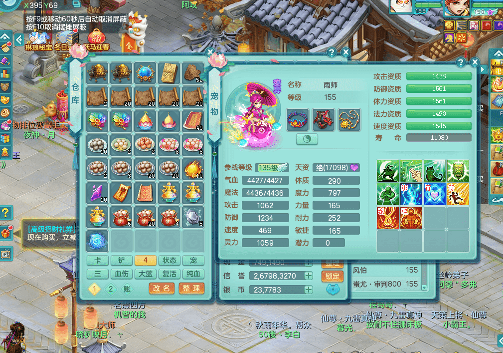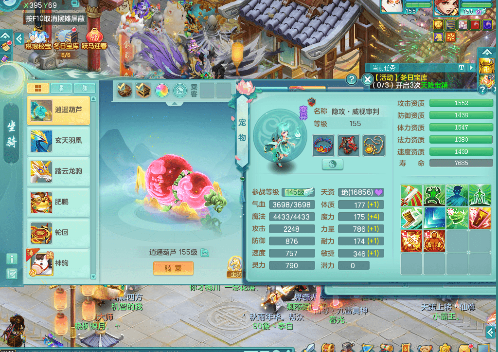 jt9271九天揽月159男佛门回春驭兽武器 马到成功战骑 新武器造型 多个染色坐骑 精灵悟 1内神 3龙2内 3镜花1龙姬 2突破 10满果子