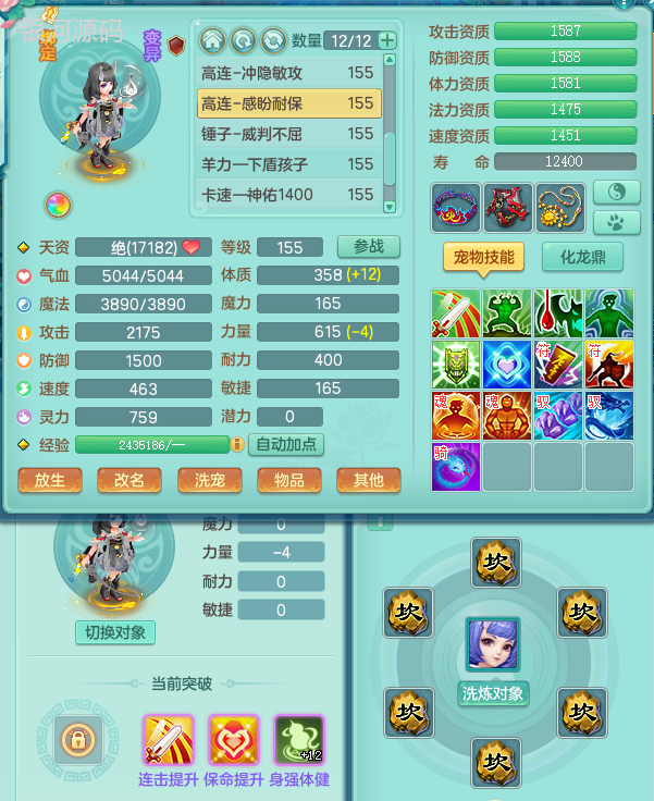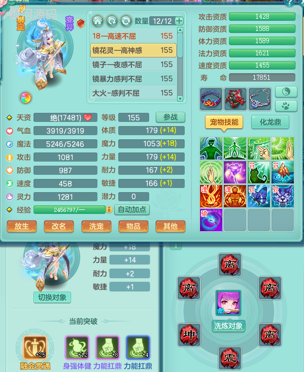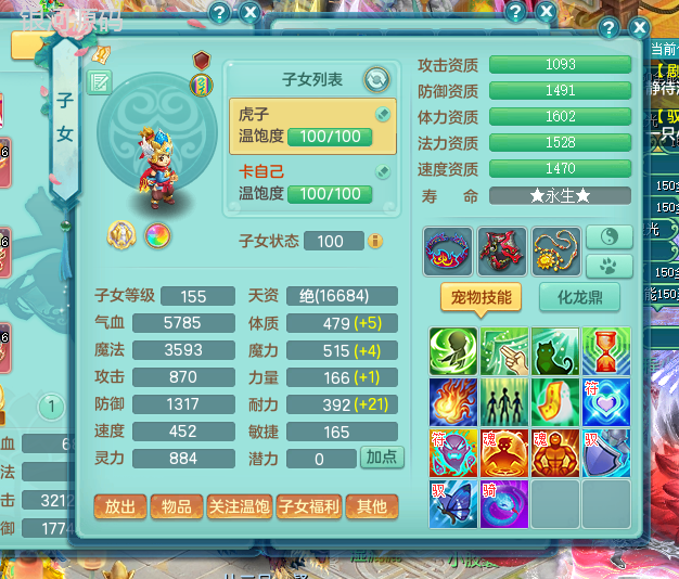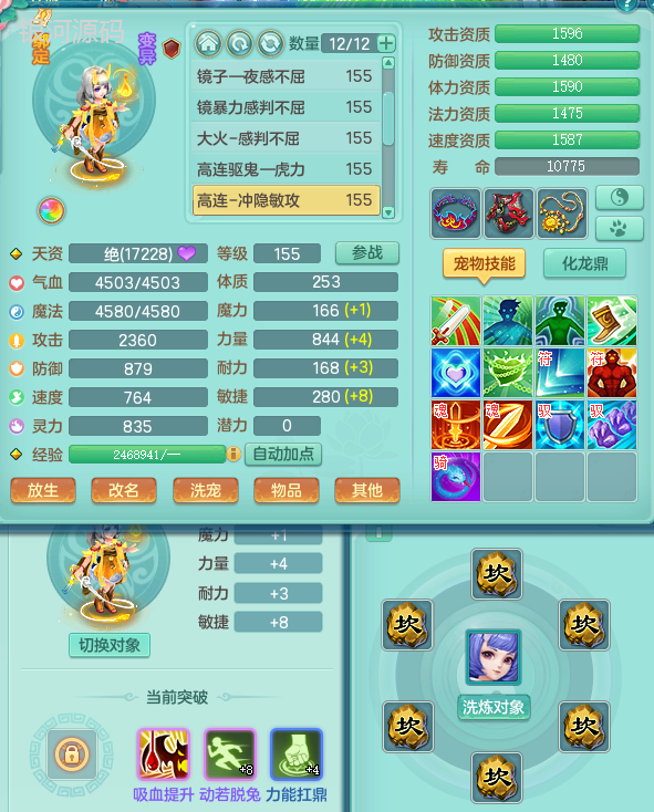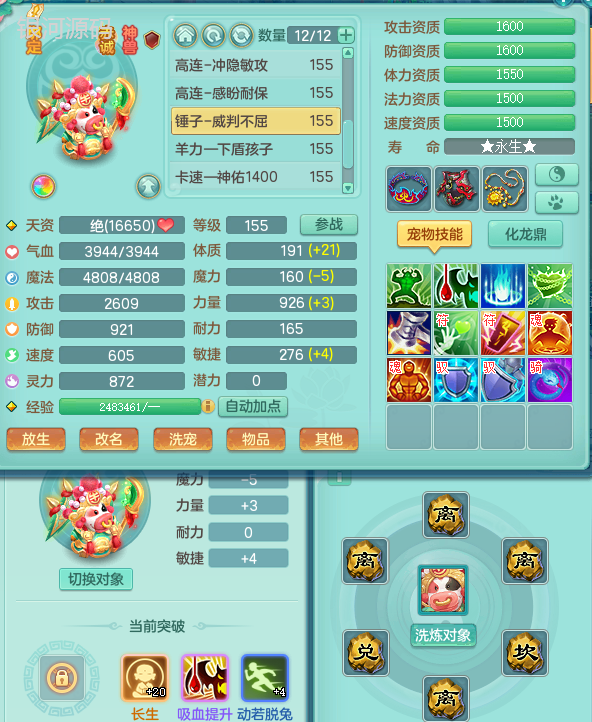 jn9289今年勇159男五庄 一线物理毕业装 1龙无内 3个6字 2个觉醒 化龙鼎5.0 12只满果子 宝宝成长很高