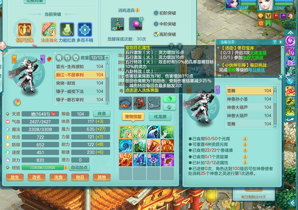 fh9291潜龙在渊风华绝代 99女盘丝 7觉醒 7六字 16满果子 3内神 装备双红多 宠物很强 细节拉满
