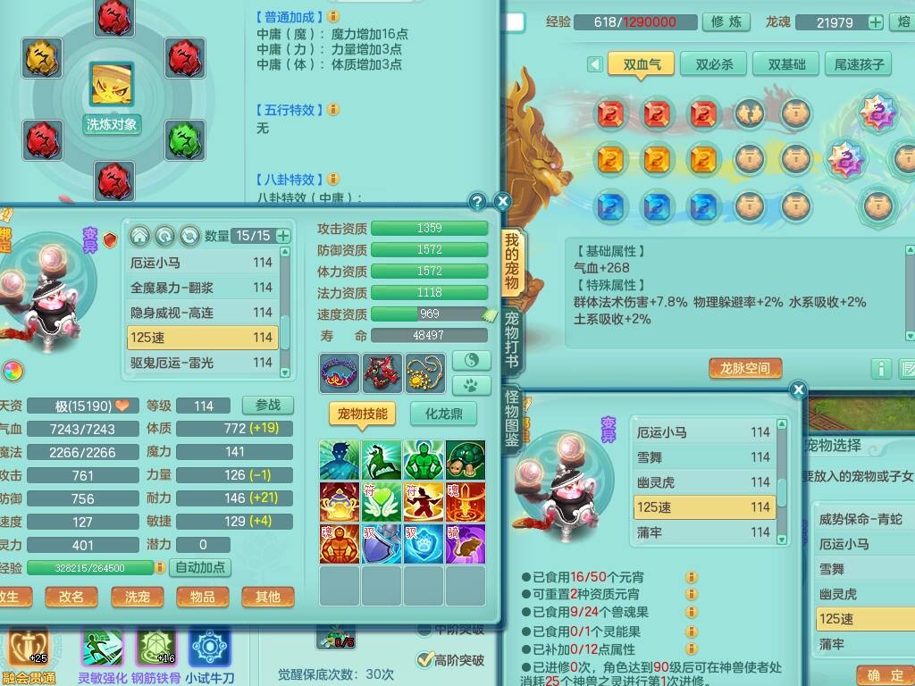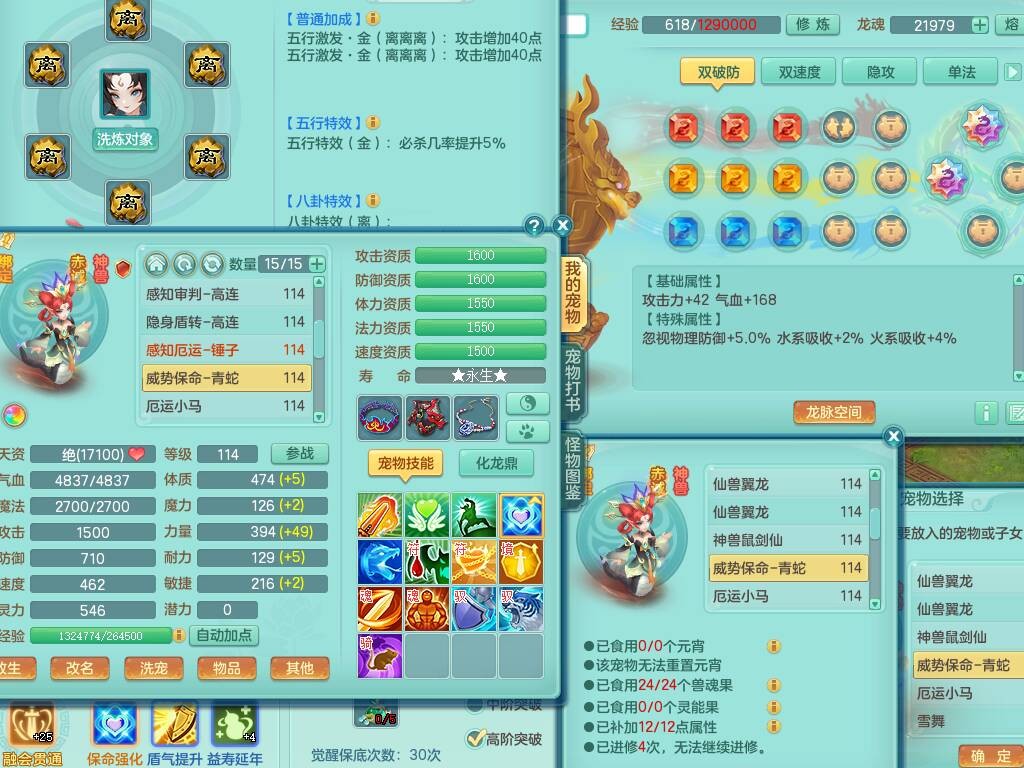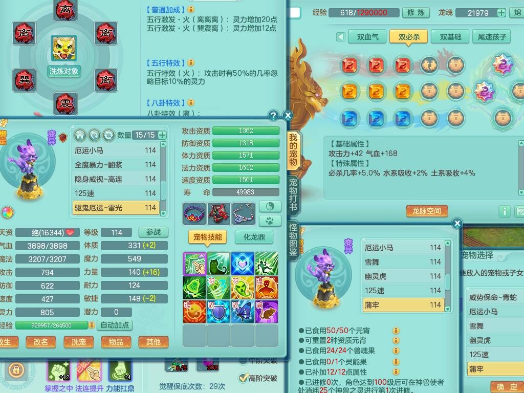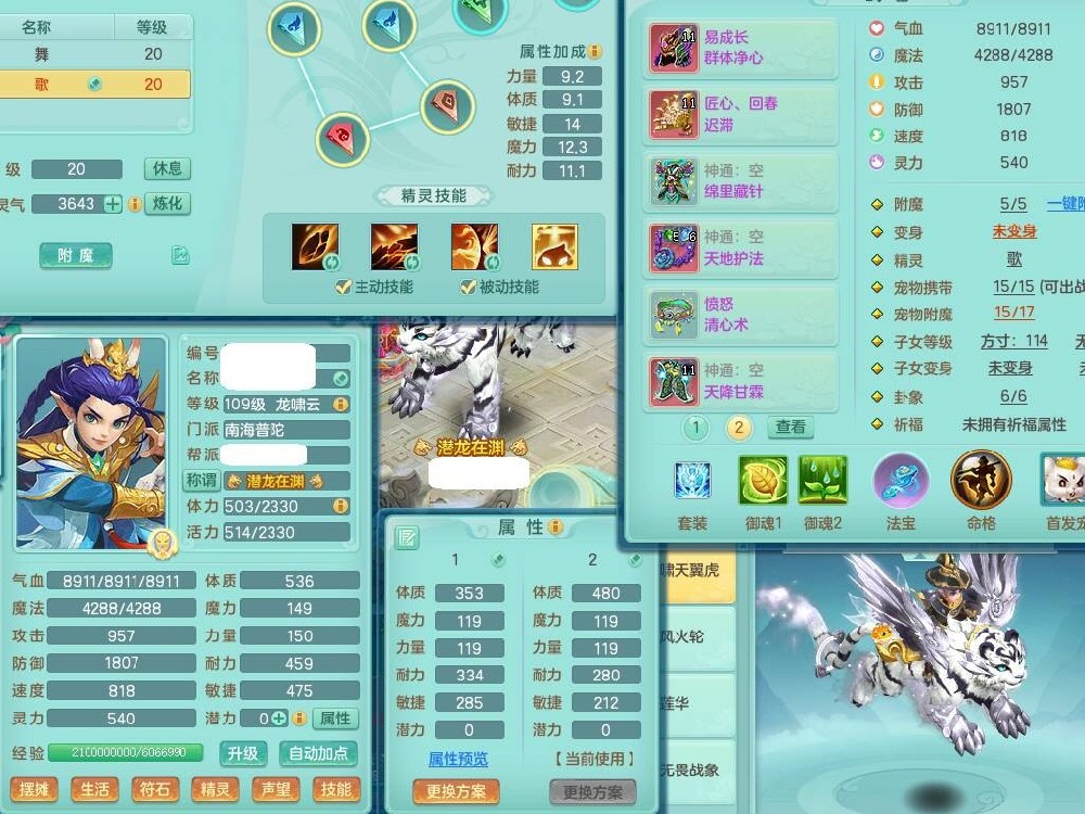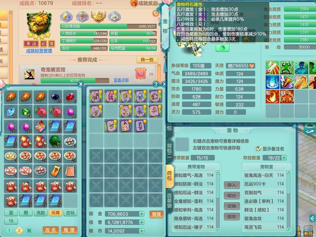 p20730龙腾九州109男普陀,精灵歌+舞,6龙2龙皮,3内胆神,4破镜,【12只觉醒,已潜龙】,10红辅助,回春愤怒六特,3.0基础鼎+42攻+168血,13个纯六字,17只+满果子,宠排在榜,永久称谓,4个孩子,双人坐骑,带38天月卡。