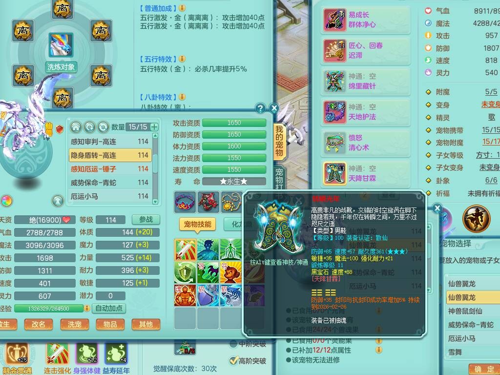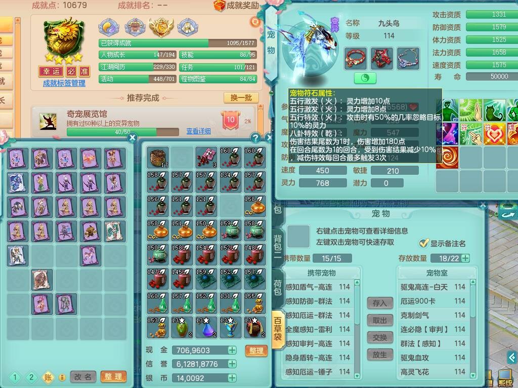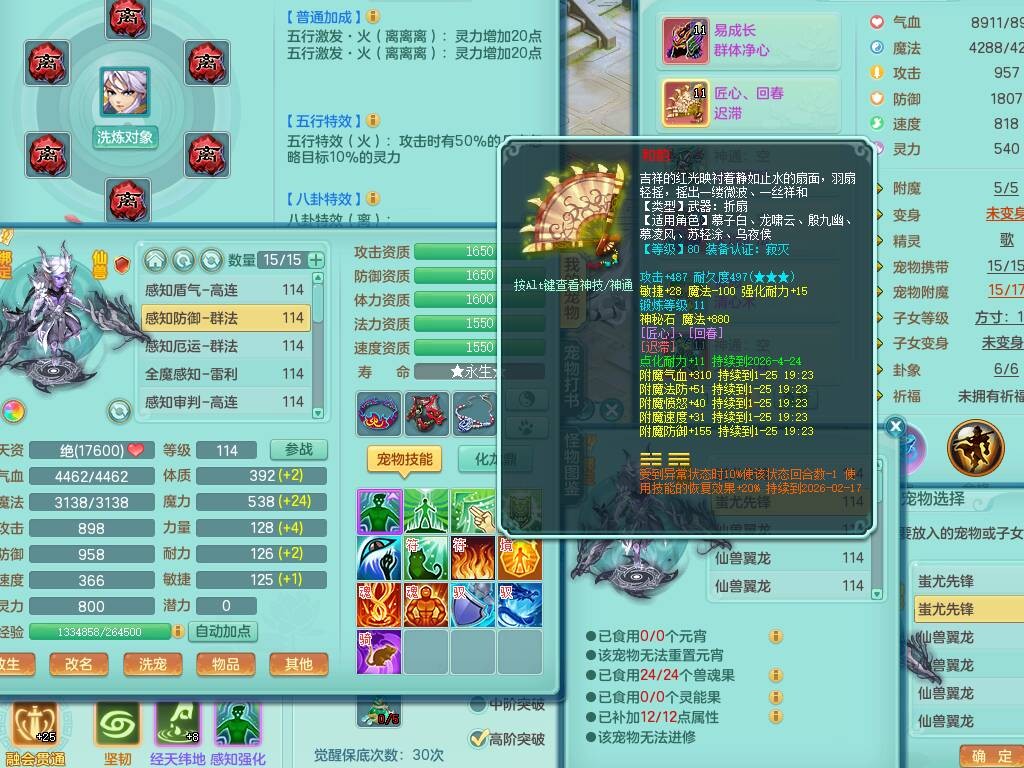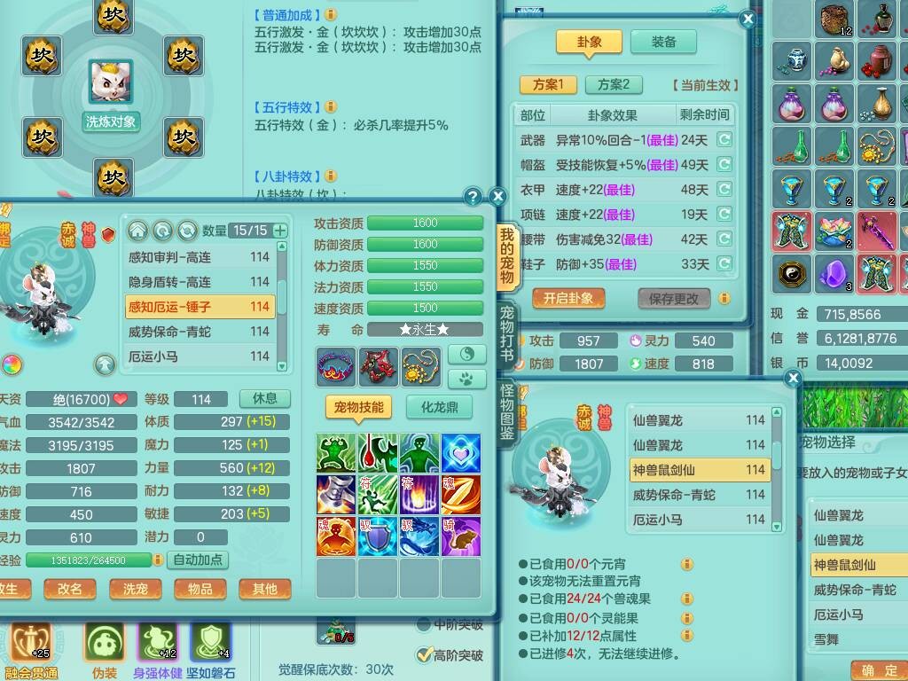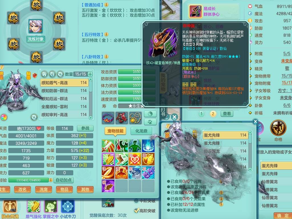 p20730龙腾九州109男普陀,精灵歌+舞,6龙2龙皮,3内胆神,4破镜,【12只觉醒,已潜龙】,10红辅助,回春愤怒六特,3.0基础鼎+42攻+168血,13个纯六字,17只+满果子,宠排在榜,永久称谓,4个孩子,双人坐骑,带38天月卡。