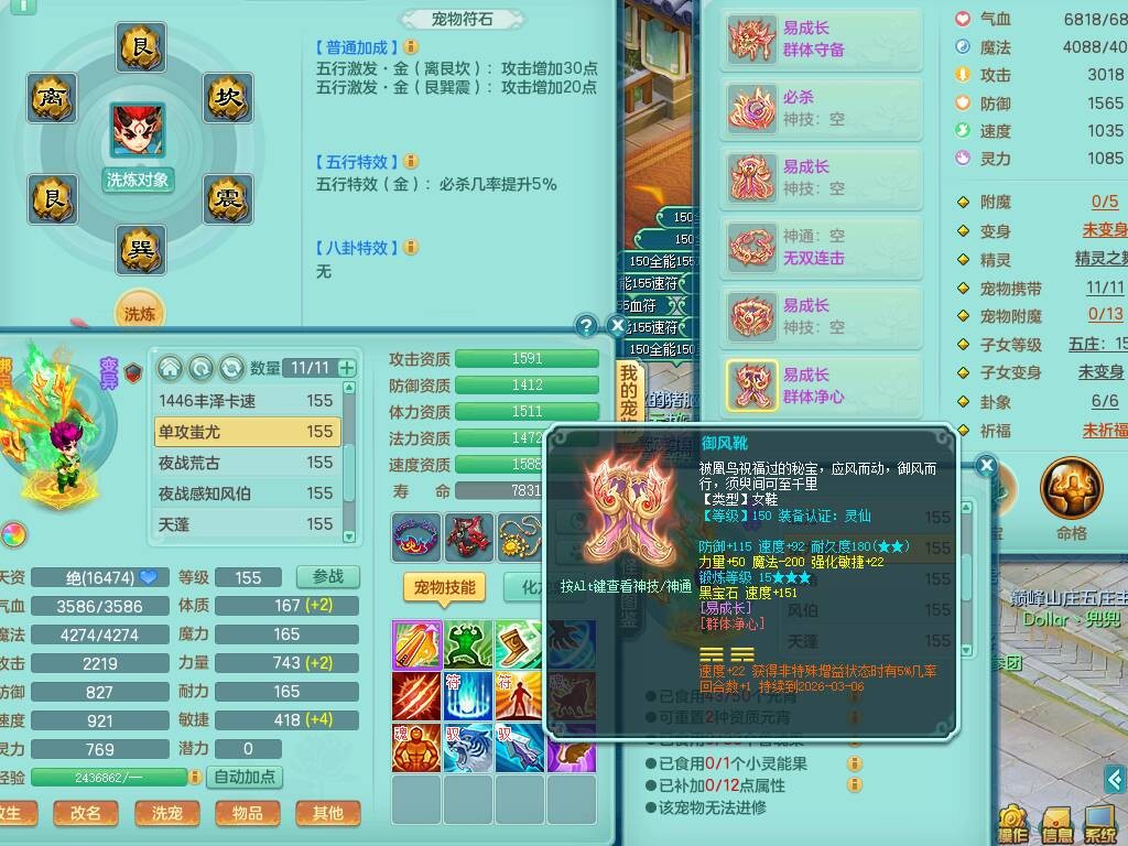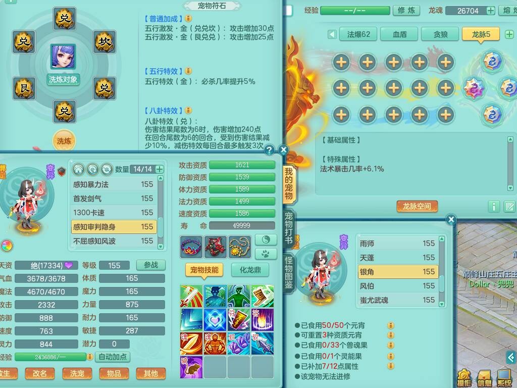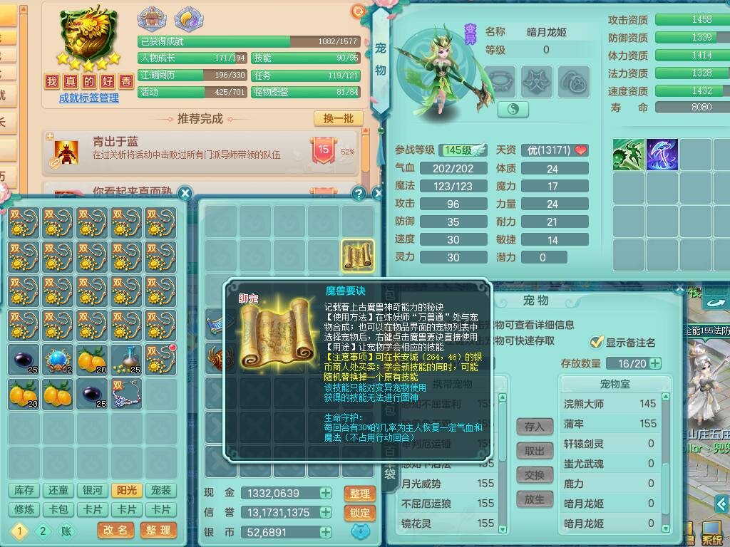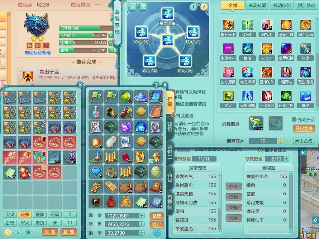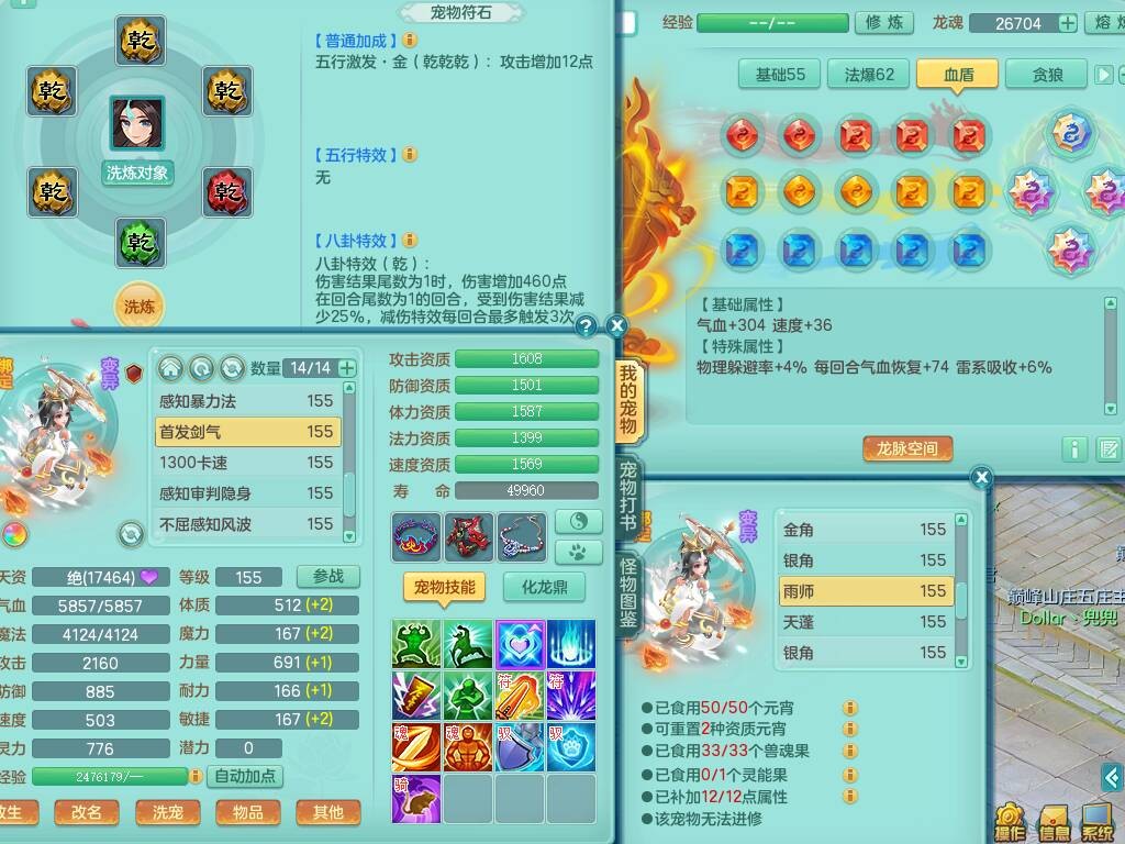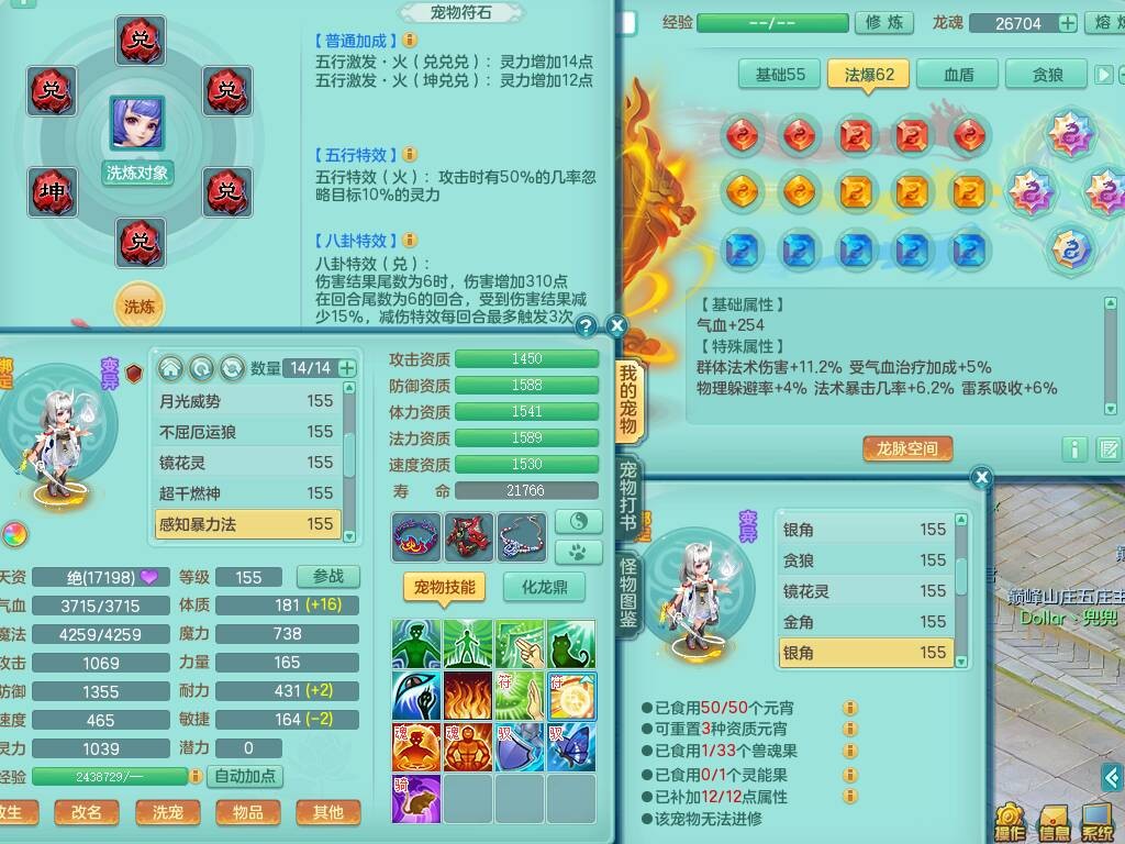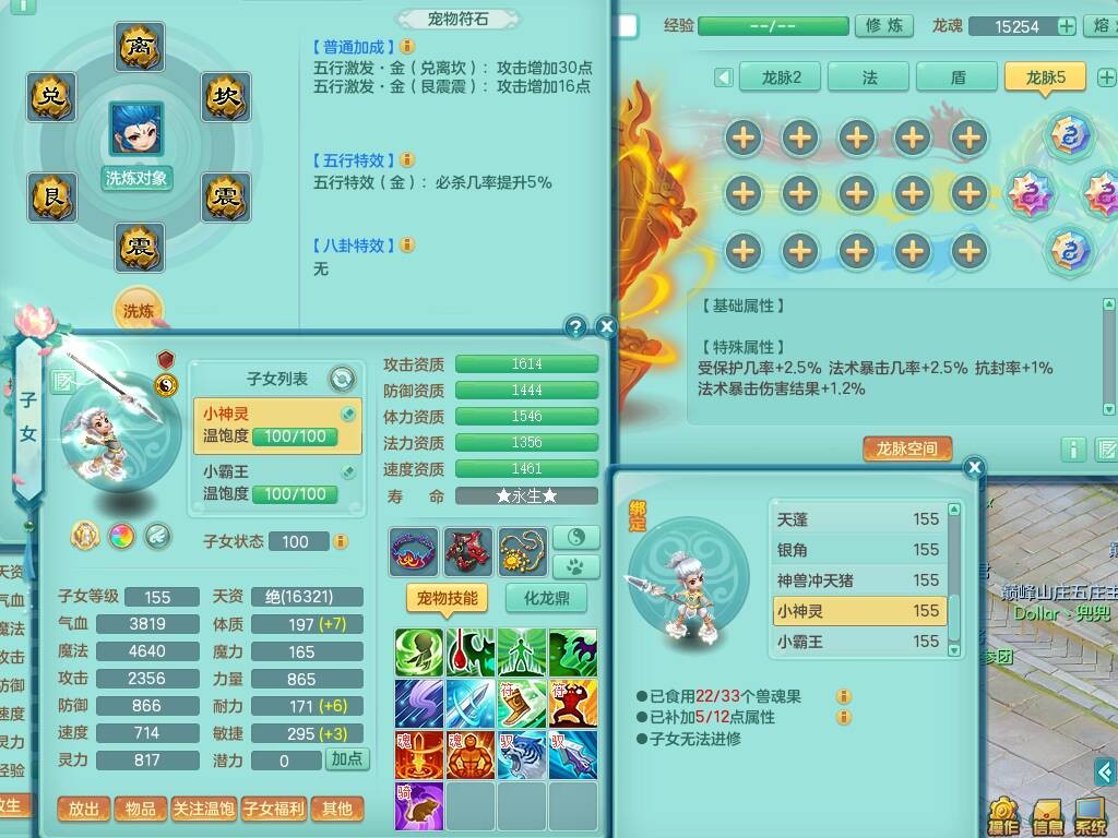 S20735江山如画四开号,159男方寸,精灵舞,1龙2内胆神,2只觉醒,2宠皮,2特殊(月光,守护),1只六技能镜花灵,愤怒5特,5.5基础鼎,2个纯六字,3个五字,8只满果子,成就在榜,双人坐骑。➕159男无量,精灵舞,2特殊(舍身,焚心),2只六技能镜花灵,回春武器,5.0基础鼎。➕159女天策,精灵舞,1只觉醒,1特殊(荒古),4.5基础鼎。➕159男万兽,精灵歌,1只觉醒,1只六技能镜花灵,5.5基础鼎。