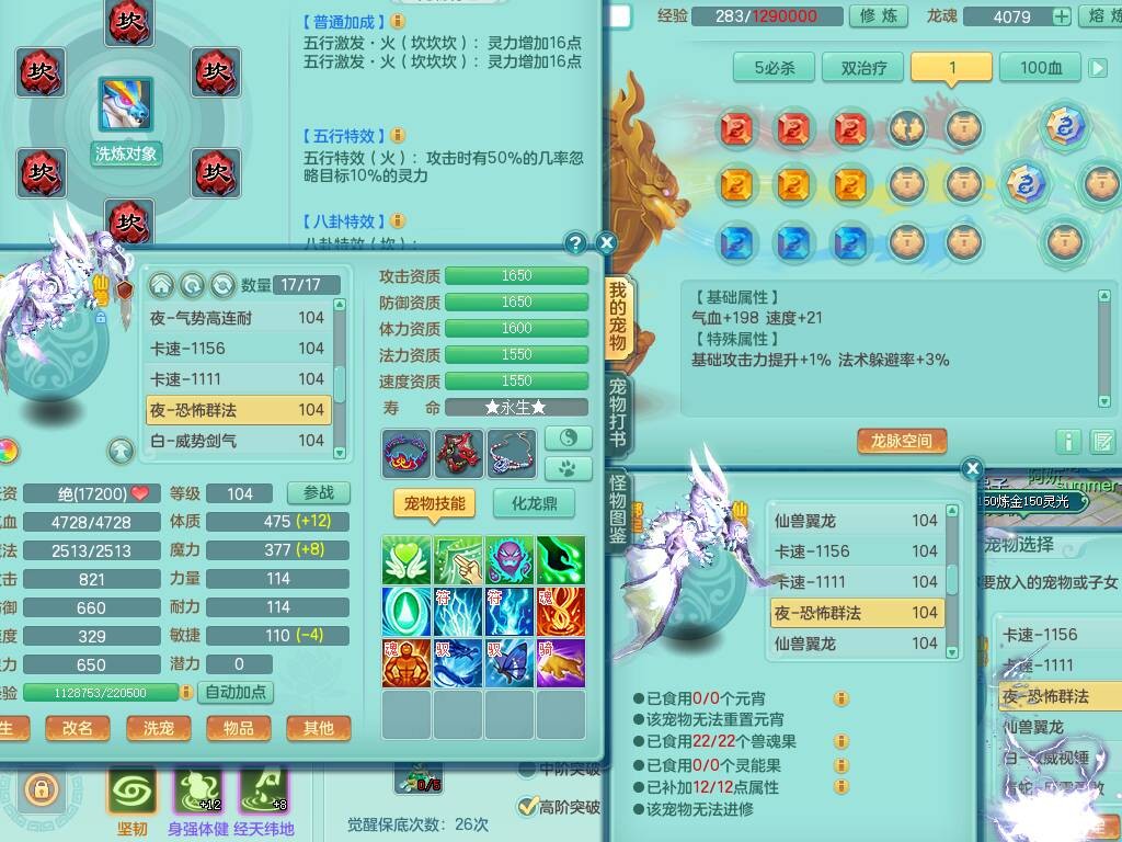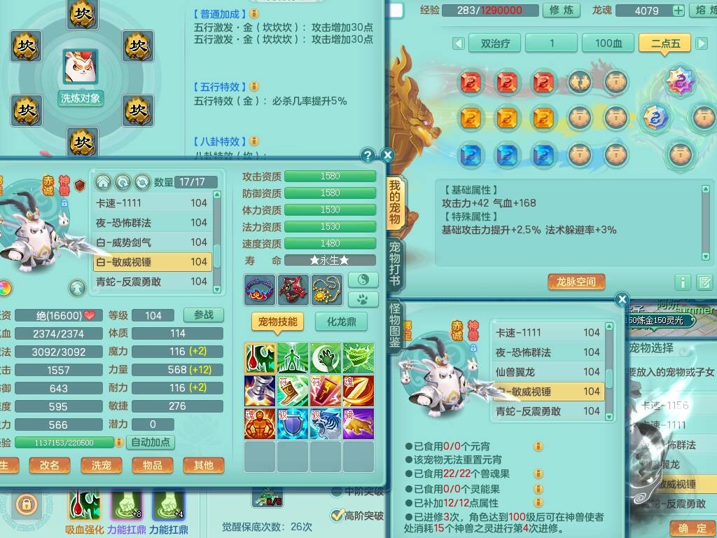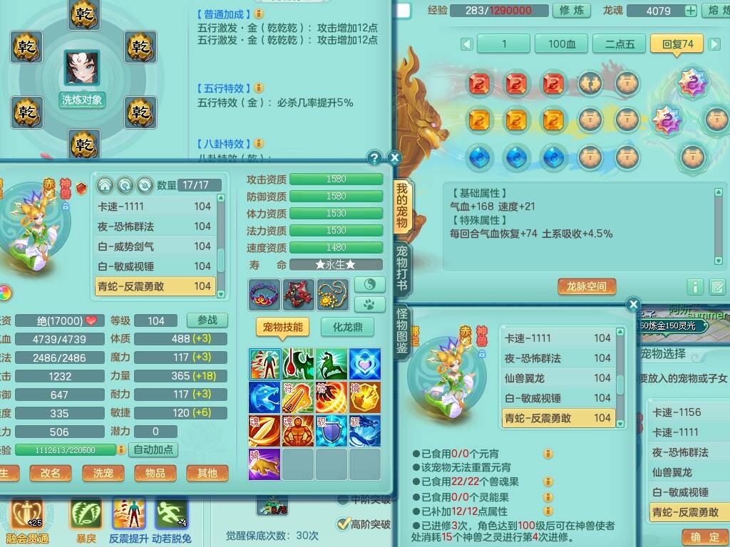 C20722龙腾九州99女魔王,13龙(1龙没内),2内胆神,1破镜,【10只觉醒,已潜龙】,4位靓号,爆炸装备,易成长烽火单加34衣服,160易成长单加31项链,双红愤怒慈航单加34腰带,法缭鞋子,五雷连珠单加34鞋子,551狂暴单加武器,163易成长清心术单加链子,仓库超多装备,各系可玩,2.5基础鼎,15个格子,16个纯六字,22只满果子,宠排在榜,3个坐骑。