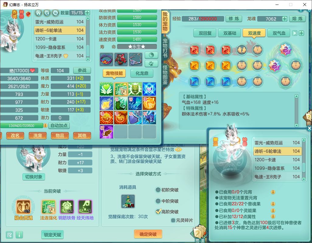 ym9302扬名立万【潜龙在渊】99男普陀【潜龙号+心想事成+火焰之力+暴龙泰坦+西瓜冰】体敏精灵,力敏精灵,全魔精灵,4龙(2破境)4内(1青蛇1龙马1破境)4舍身4翻浆1童子1建木1炉子1雷光5宠皮,9觉醒23只满果子,9红装备,单加群体守护帽子,单加回春笑里武器,单加止戈衣服,单加Y四海项链,愤怒水清腰带,单加罗汉鞋子,Y玉清鞋子,鼎2.5+42+168,3套符石,2史诗3传说6精良法宝,145天月卡,永久外观饰物、精灵皮肤,27197金币,3双人坐骑(2飞行)