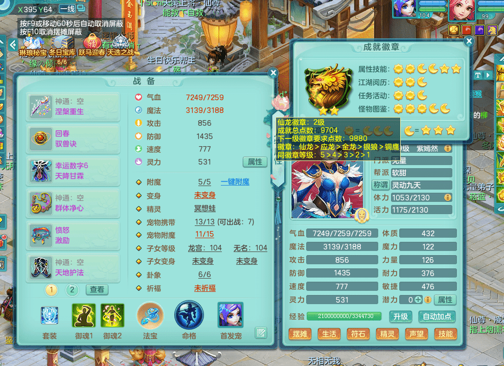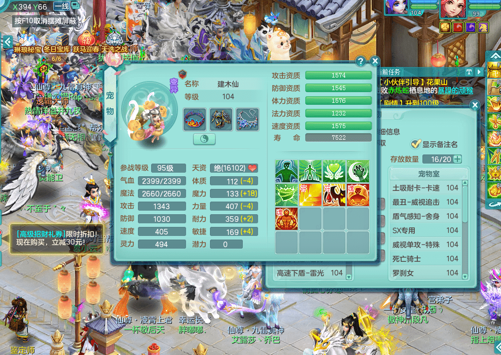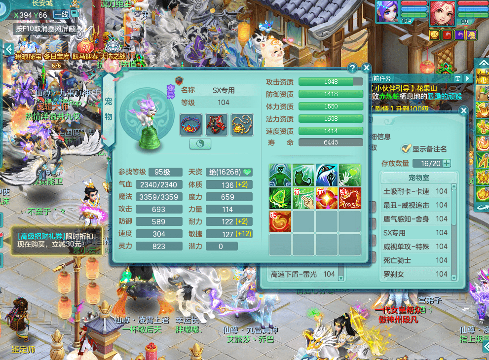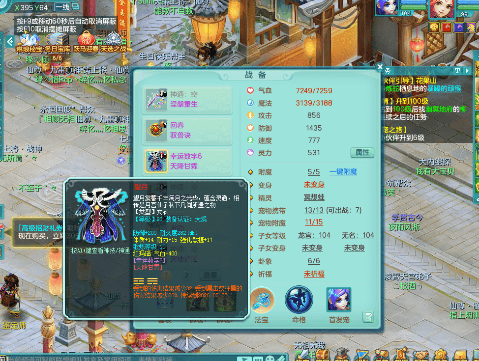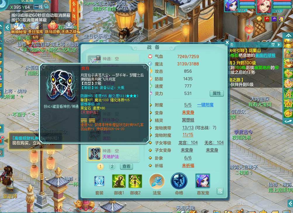 tx9308 天下无双 99女佛门 有大宝剑皮肤 7觉醒 4六字 13满果子 宠物齐全 上手可PK