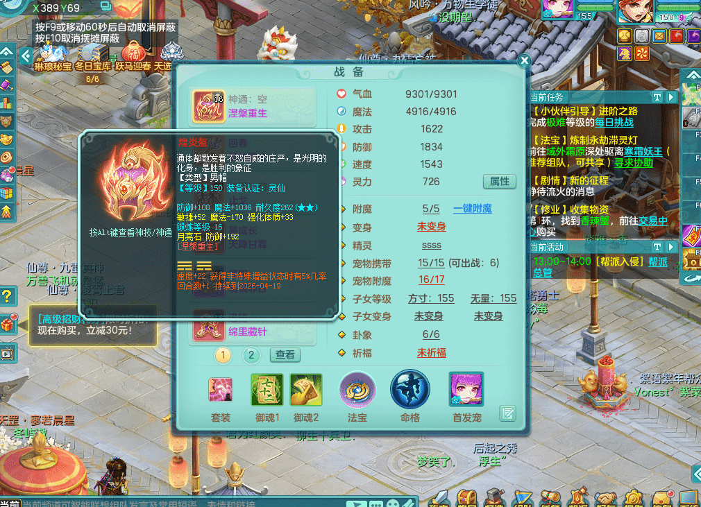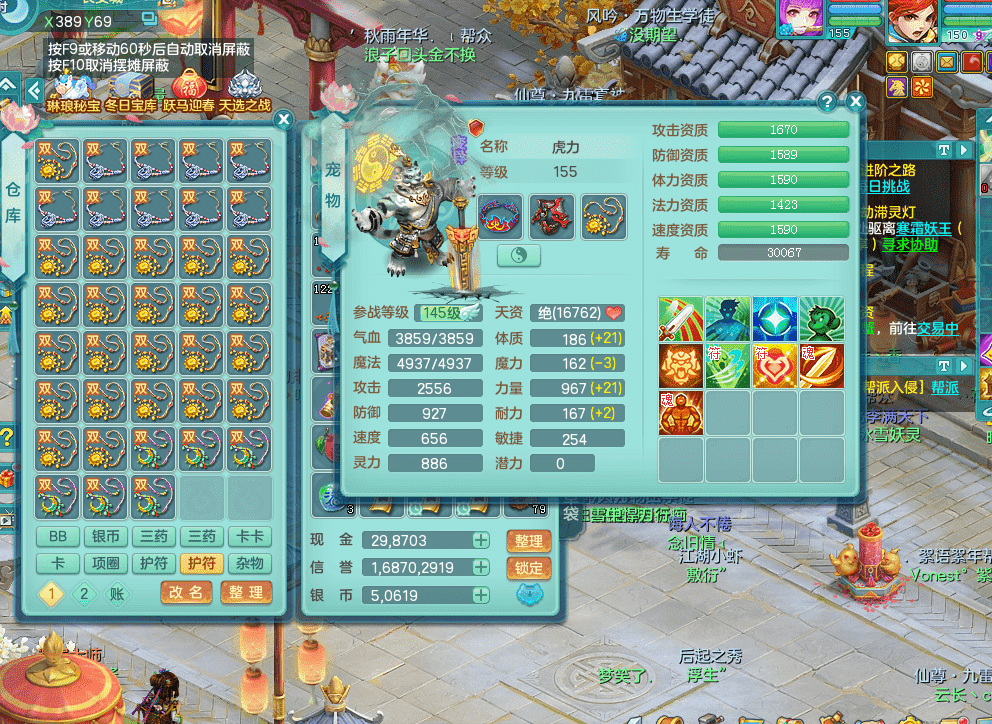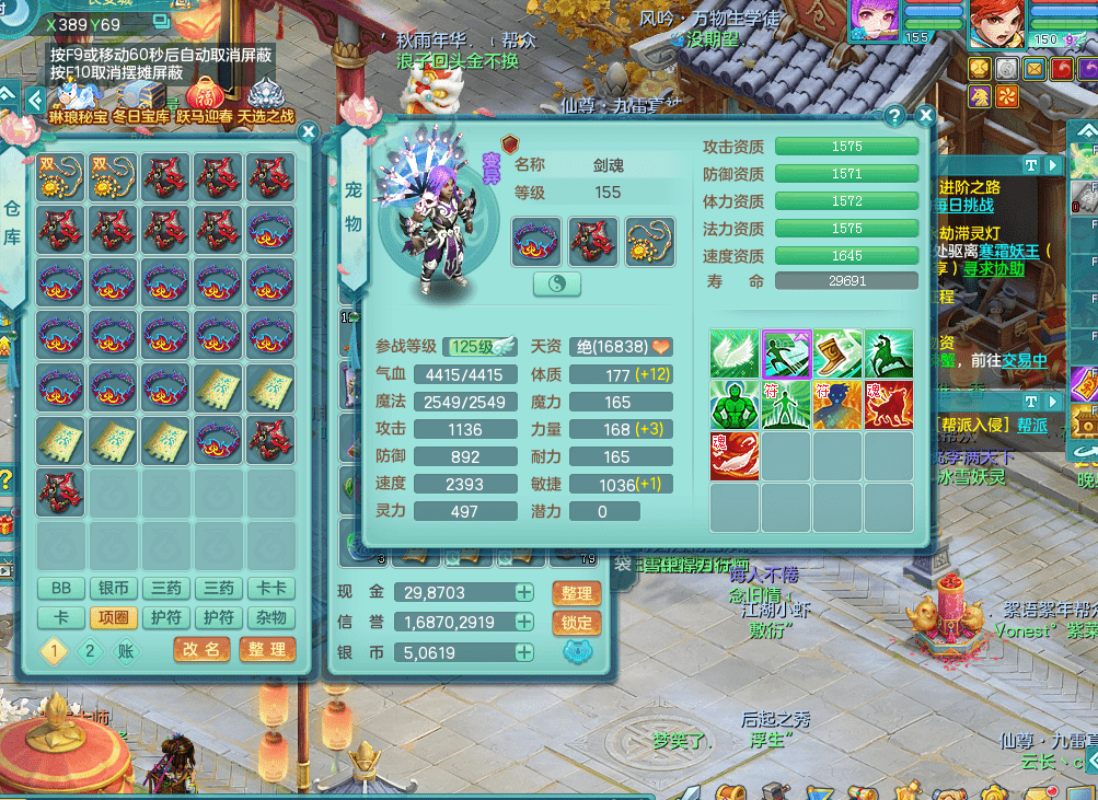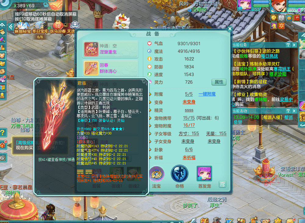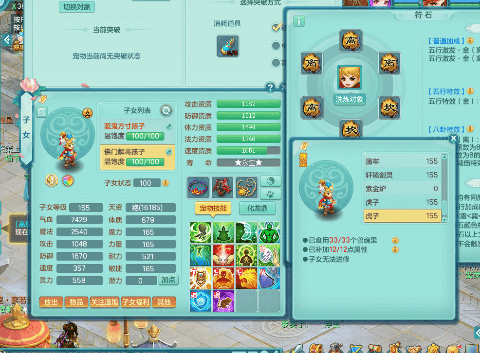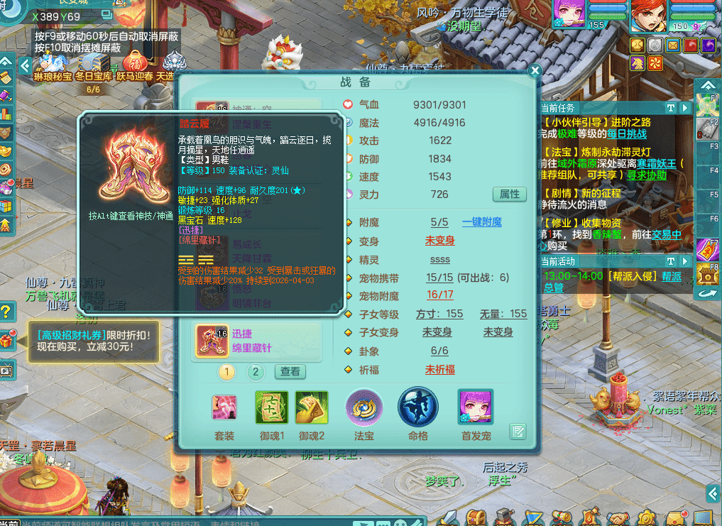 fh9312风华绝代【潜龙在渊】159男方寸精灵舞,2龙1内胆神,【8只觉醒,已潜龙】,1宠皮,2特殊(焚心,登云),1只六技能龙姬,4只六技能镜花灵,10红愤怒回春迅捷六特,5.5基础鼎+70攻+280血,13个格子,马上 14 格子, 7个纯六字,2个五字,21只满果子,仓库还有 95 个果子,宠排在榜,经验修炼成就在榜,3个坐骑,暴龙洪荒,带170 天月卡。➕159女万兽,精灵歌,2只六技能镜花灵,2特殊(雷光,枪出),928易成长单加55武器,崩山单加56衣服,易成长罗汉单加53腰带,5.0基础鼎+70攻+280血。➕159男无量,精灵歌,1只觉醒,3只六技能镜花灵,1特殊(噬风),4.5基础鼎。➕159女五庄,精灵舞,1只觉醒,2只六技能镜花灵,愤怒玉清单加腰带,4.5基础鼎。