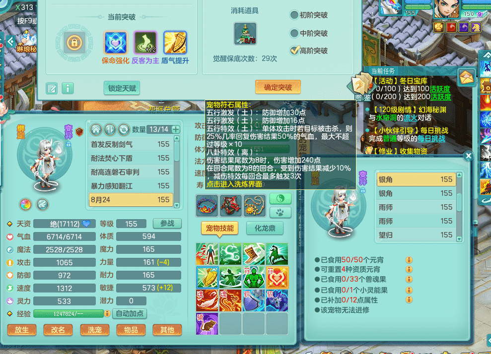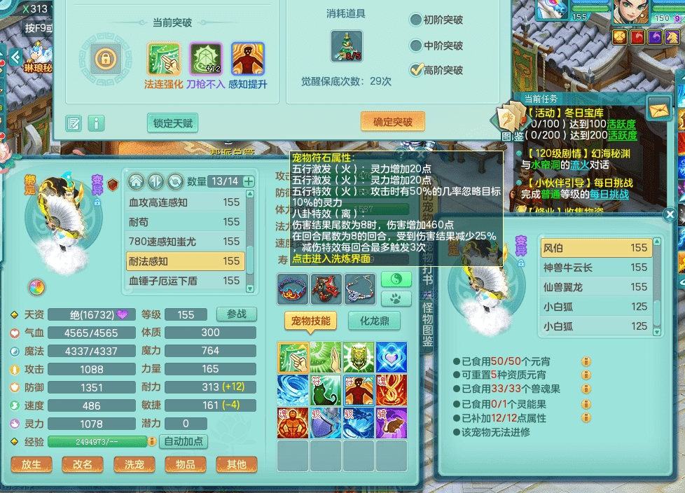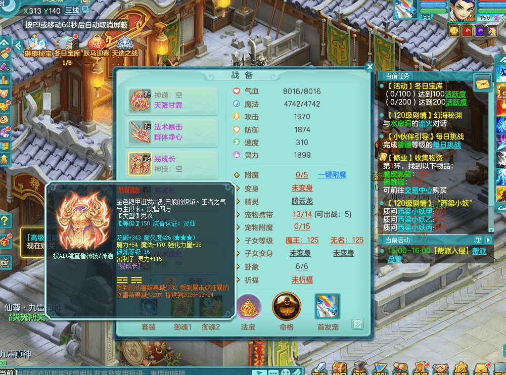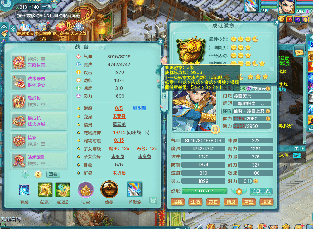tx9322天下无双 159男法天宫 精灵歌 1龙 1内神 5.0+64化龙鼎 染色大马坐骑 焚心翻浆特殊 1觉醒 4六字 11+满果子 Y烽火项链 法爆玉清武器