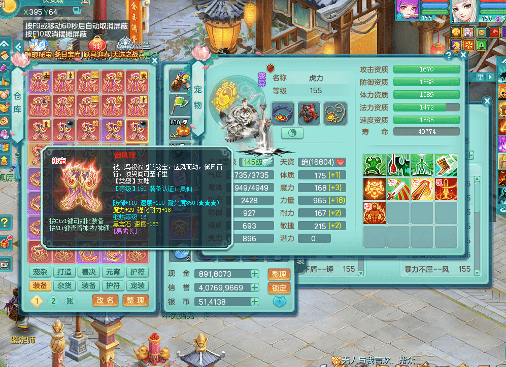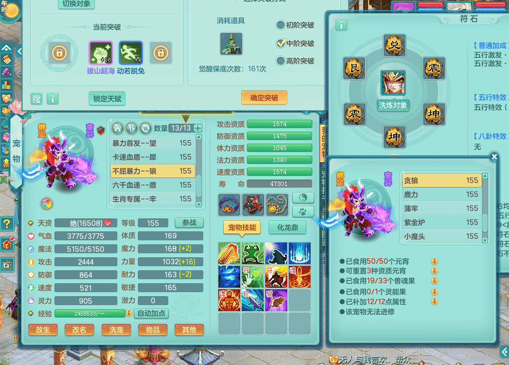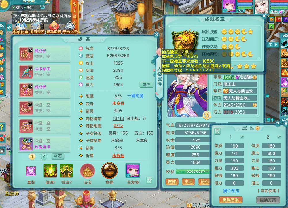 jt9324九天揽月 159女魔王 精灵歌 染色狮子坐骑 染色精灵皮肤 1内神锤子牛 化龙鼎5.5基础+64攻 特殊月光银角 2六技能镜花 宠物齐全 海洋豪宅 151美观庭院