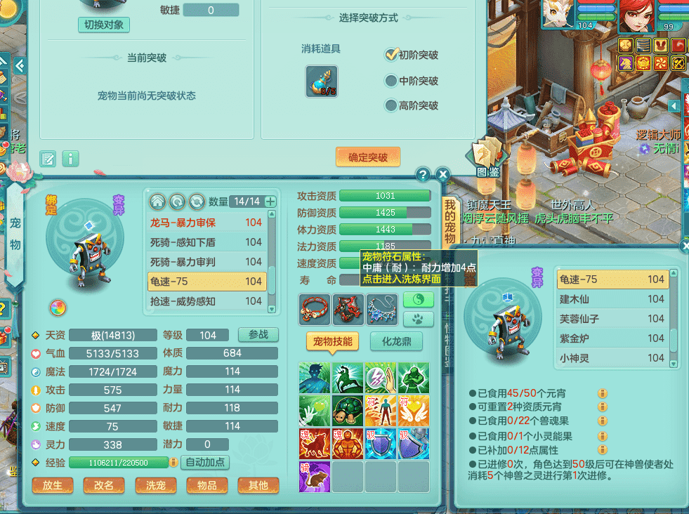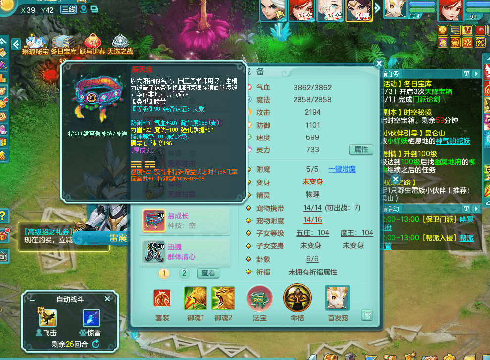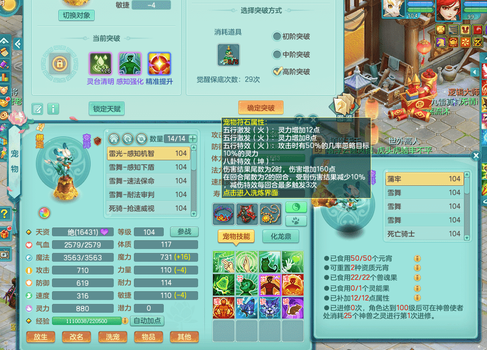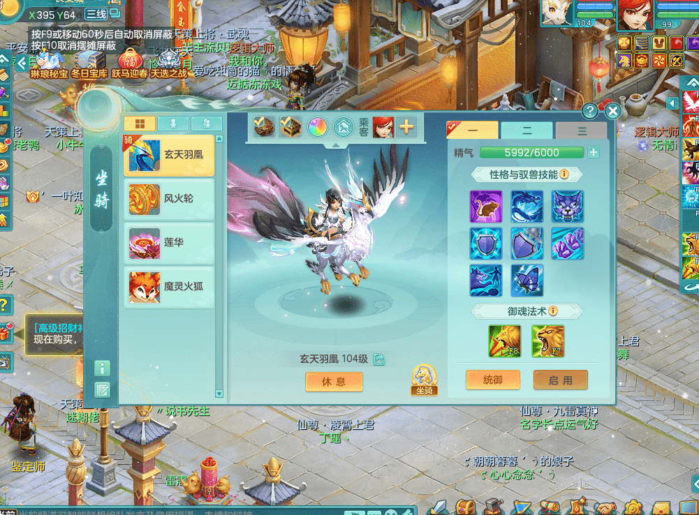 tx9326天下无双 99女万兽,双飞坐骑,2.5基础+42攻击化龙鼎 天上人间庭院,1龙无内,1内神(龙马),8觉醒5真6字13+满果子,三精灵(物,法,辅)有配套装备 可玩三系