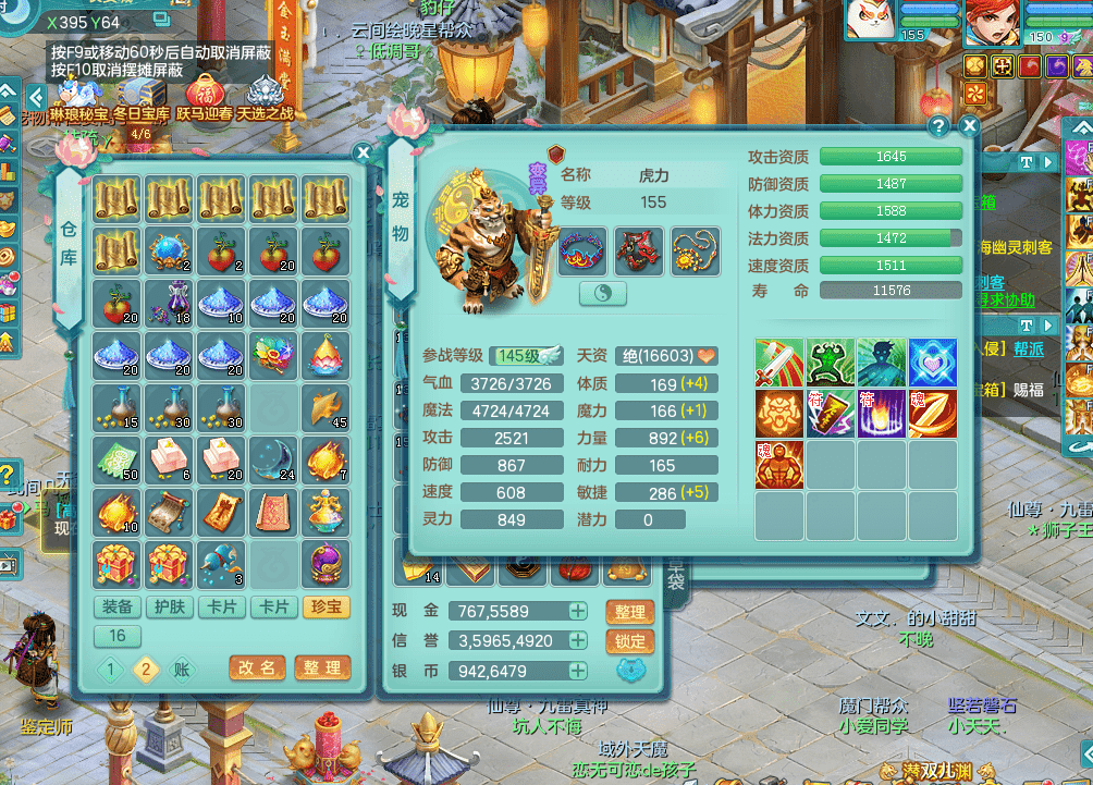 fh9333风华绝代【潜龙在渊】159男佛门 四字靓号不带4 多双红辅助装毕业 恐龙坐骑 精灵舞 5.5基础化龙鼎 千万神武币 7觉醒 10六字 26+满果子 8内龙 3内神 4镜花 多宠皮 仓库还有神内丹 多只完美染色坐骑 粉色豪宅