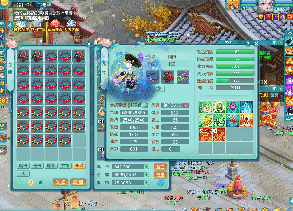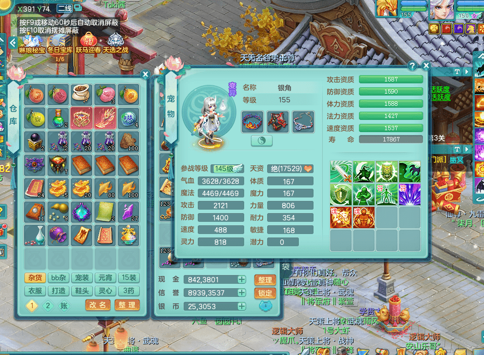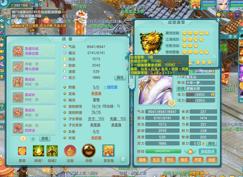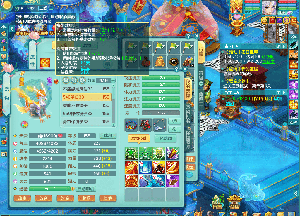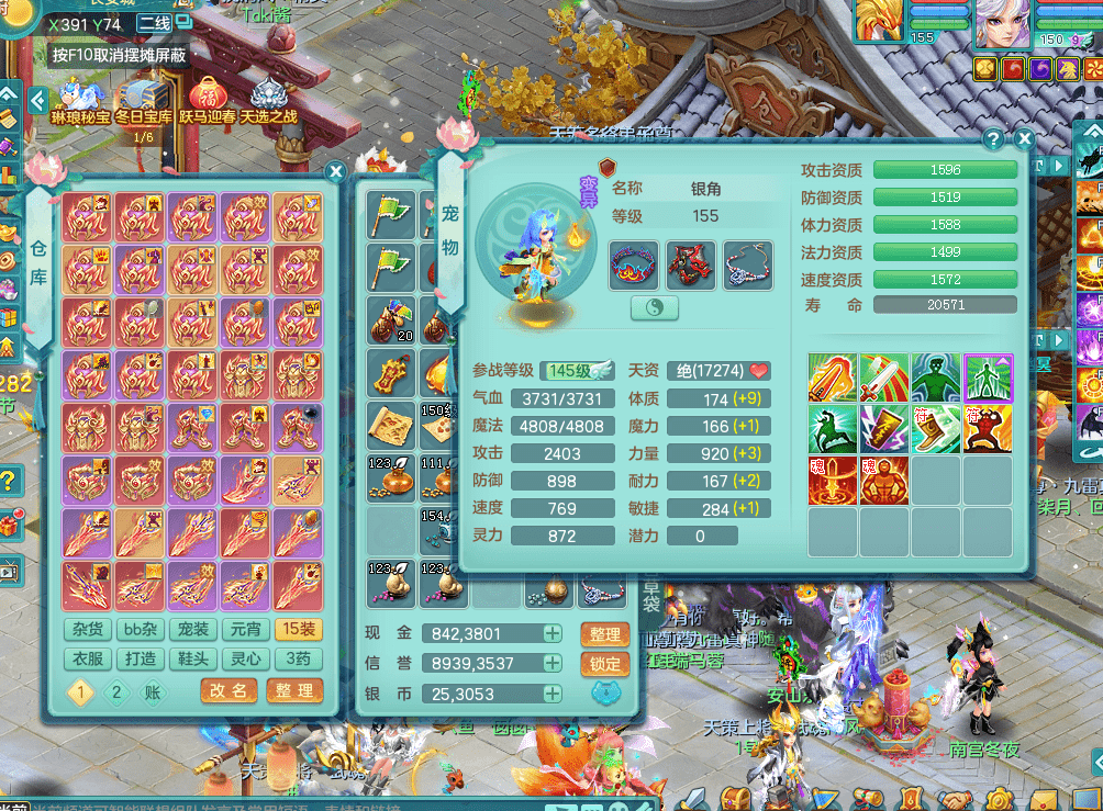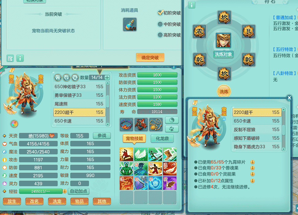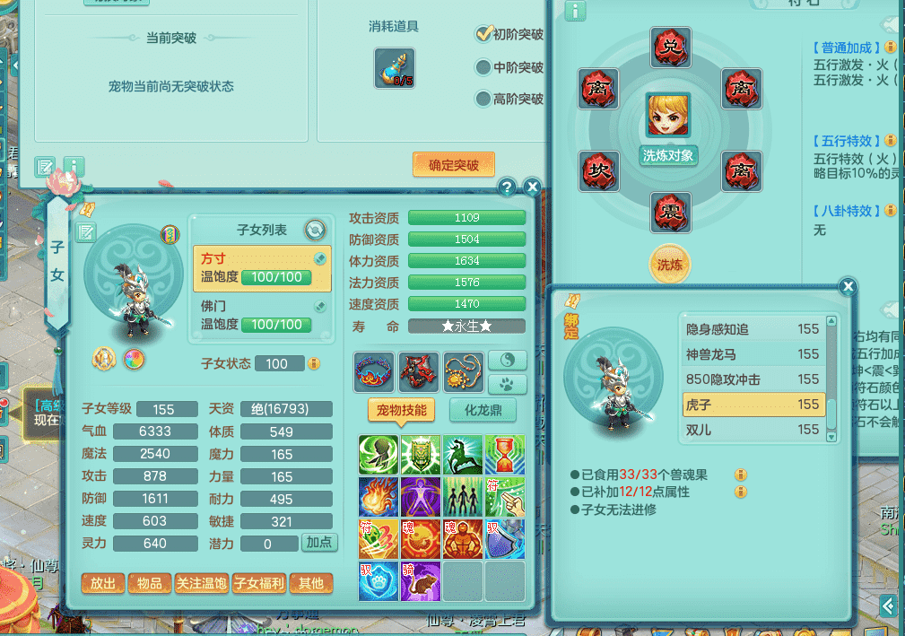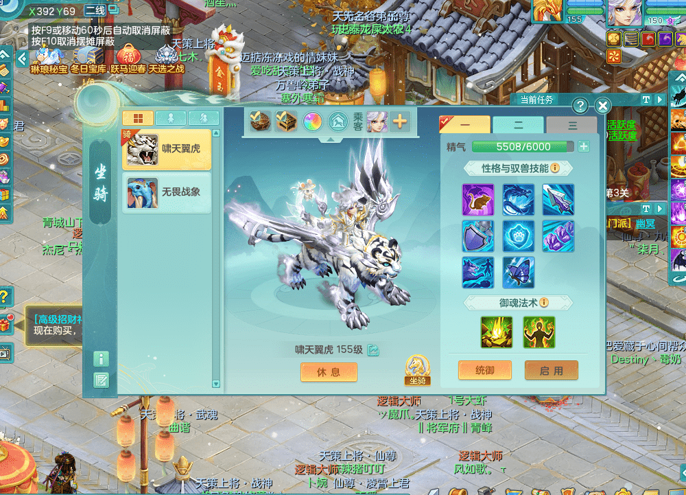 tx9338天下无双 159男魔王 1内神龙马 染色皮肤精灵舞 5.5基础化龙鼎 4觉醒 1六字 10个左右满果子 3只成品六技能镜花 1龙姬 3套属性 急速冷却四海头 一身单加易成长 宠物齐全 仓库多装备可切换 染色大老虎坐骑 海洋豪宅 1源生羊