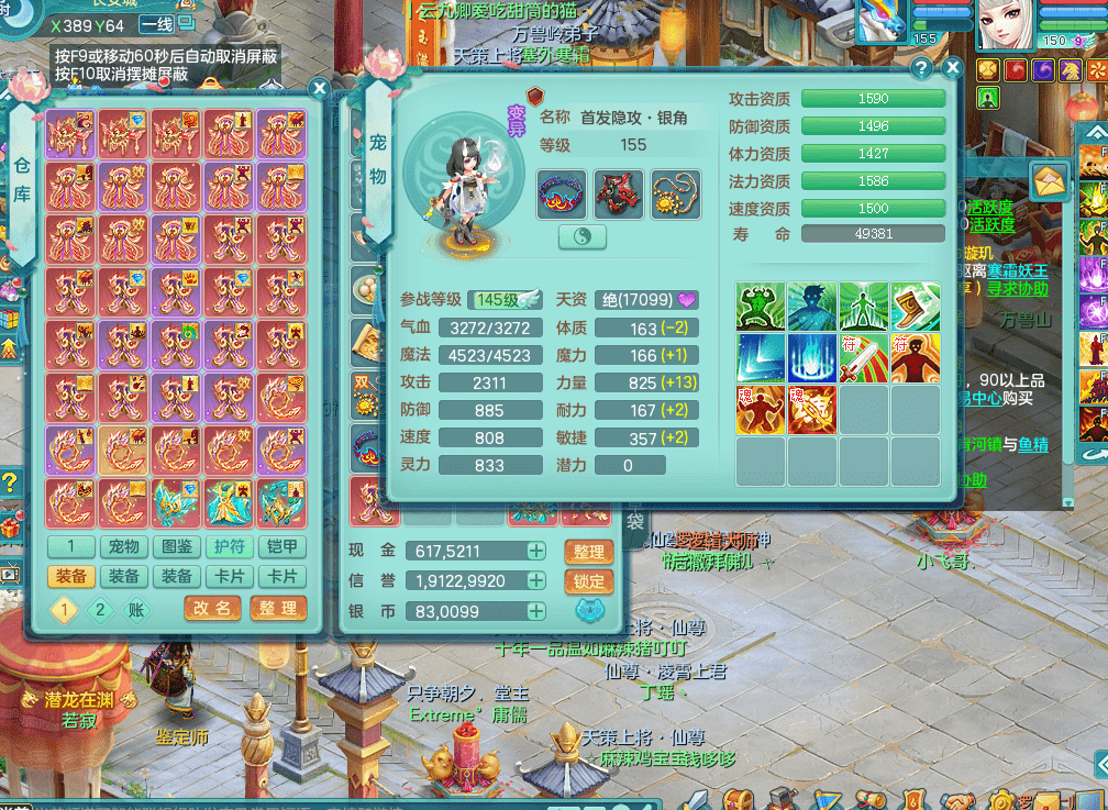 tx9340天下无双 159女魔王 双单加法术缭乱159魔王 可玩愤怒6特辅助。一龙无内。1内单神(已破镜) 5个6技能镜花灵。还可以通灵 2个红心5技能龙姬。4觉醒 2个6字。10➕满果子 149美观庭院 131海洋豪宅