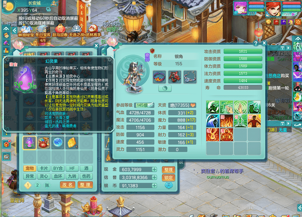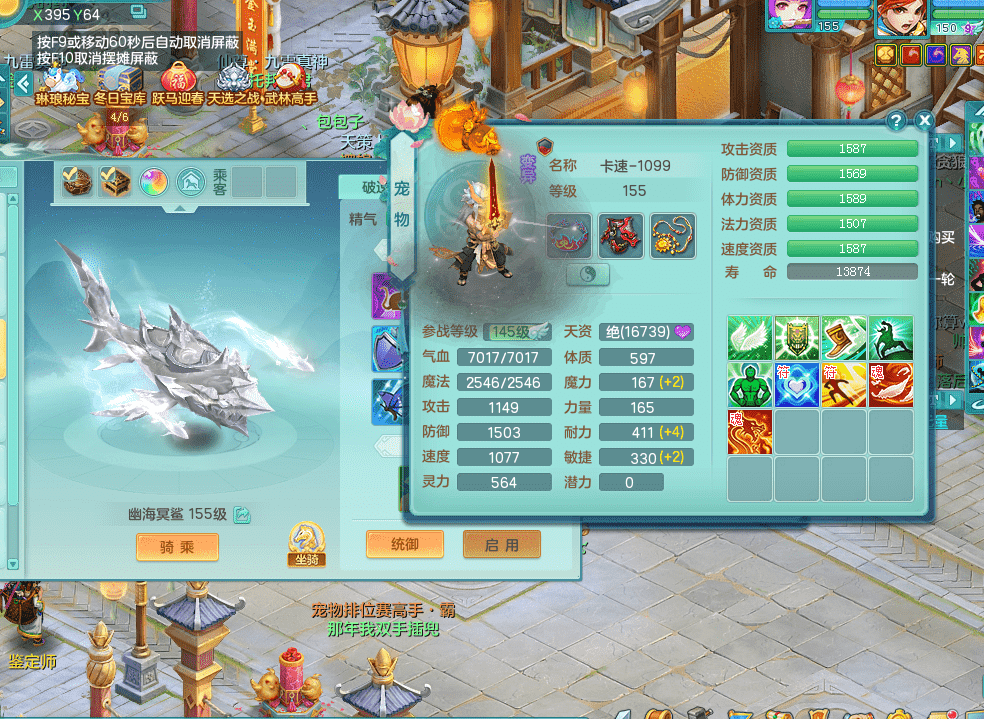 zs9343醉生梦死【潜龙在渊】159男方寸 四字靓号 急速冷却四海头 Y群体安神鞋子 机甲恐龙坐骑 西瓜冰武器 5.0化龙鼎+70攻击 3套人物属性 精灵舞 9觉醒 2内神有龙马 2内龙 5个成品镜花 20只左右满果子 多个宠皮 多只特殊宠物 多只完美染色坐骑 152房屋 166冰晶庭院!!!