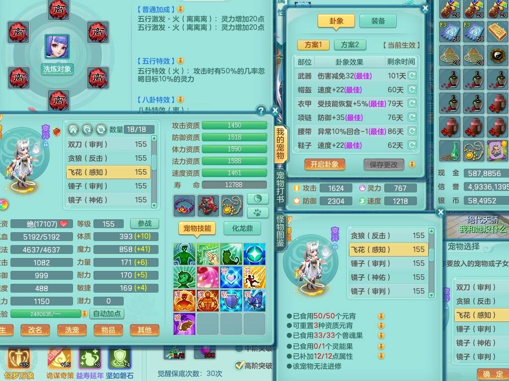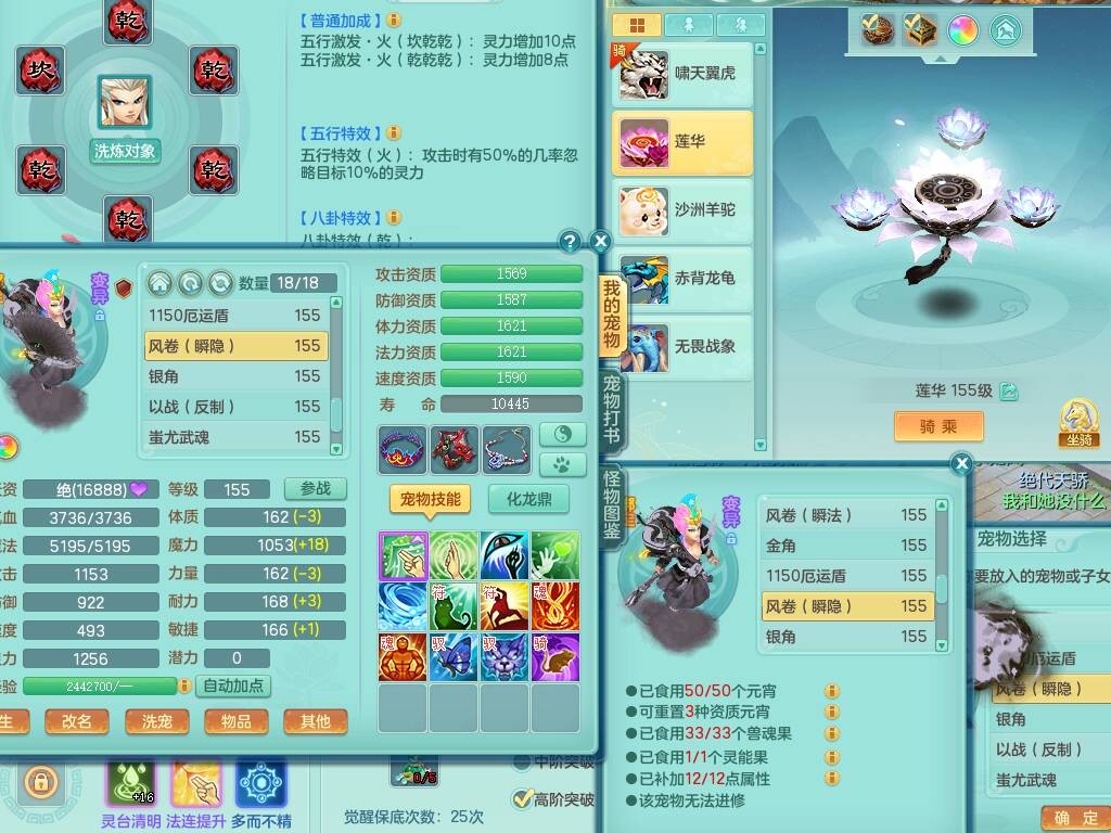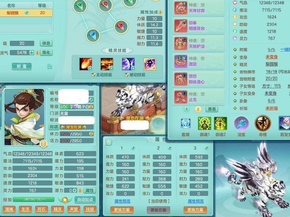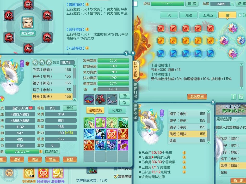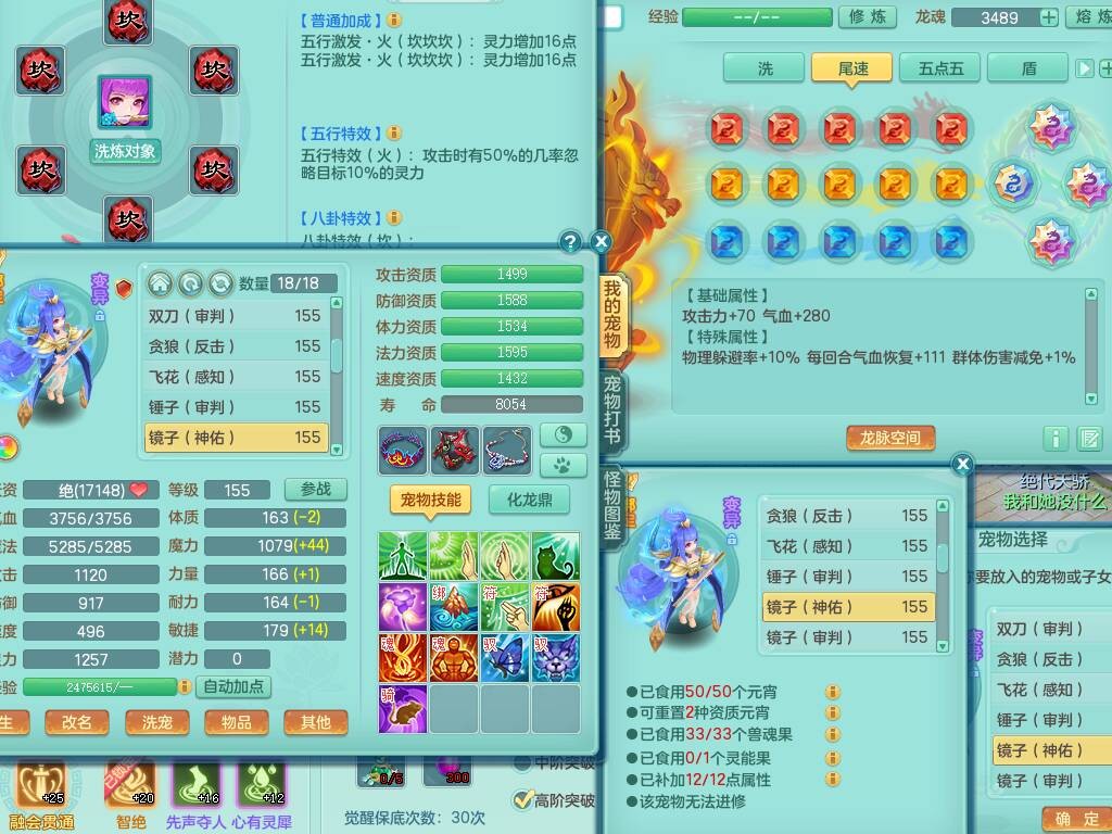 fc9370风驰电掣159男无量,精灵舞,1龙1内胆神,2破镜,【9只觉醒,已潜龙】,1宠皮,3只六技能镜花灵,1只6技能龙姬,8特殊(青霜,锤子,舍身,噬风,飞花,以战,号角,守护),回春愤怒6特,5.5基础鼎+70攻、280血,物理躲避10%,15个格子,13个纯六字,4个五字,23只满果子,宠排在榜,经验修炼在榜,黑白老虎,月卡还有34天