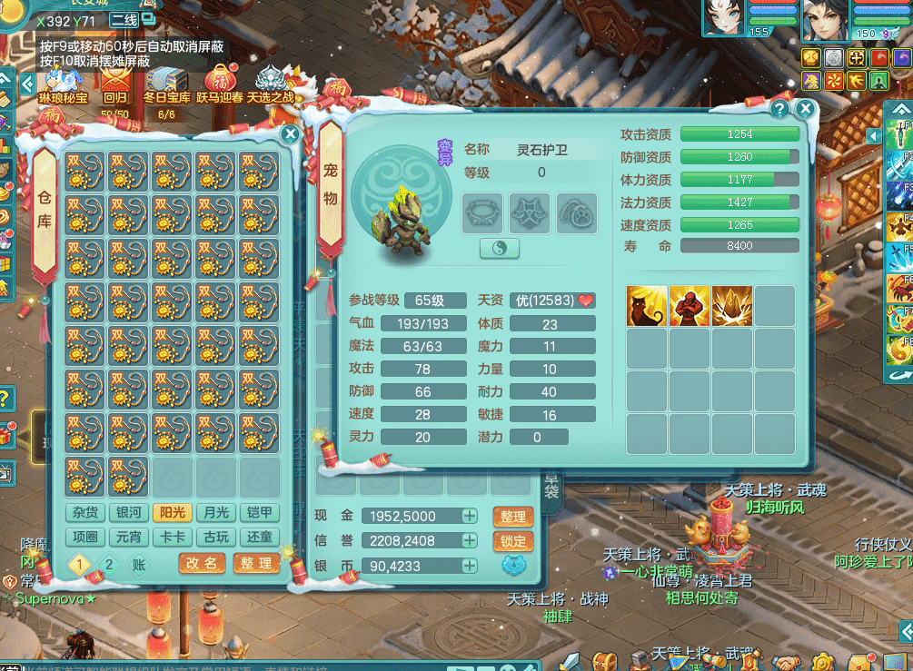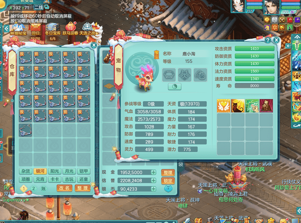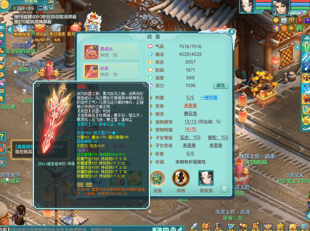tx9386天下无双 159男五庄 精灵舞 3.5化龙鼎 匠心易成长鞋子 一身接近满段装备 宠物好几个 经验号!!!