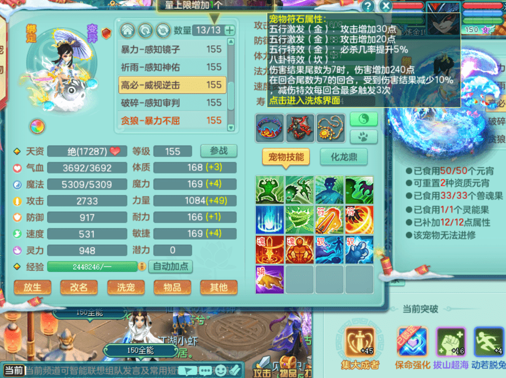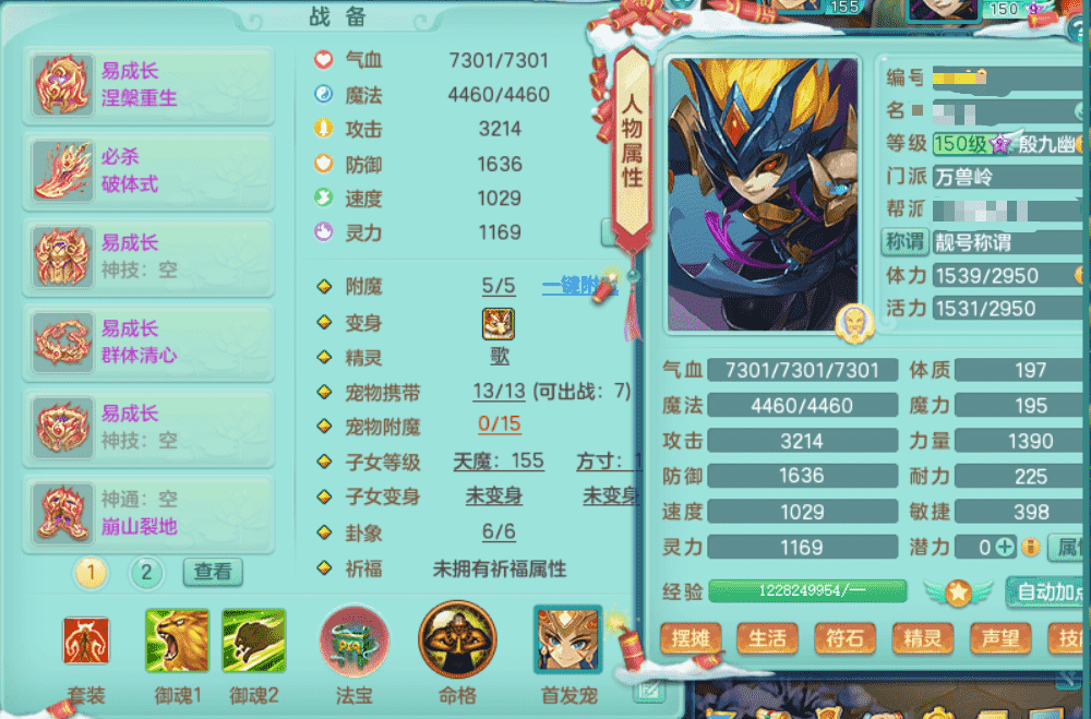 tx9438 天下无双 159男万寿 4位靓号,原始暴龙,1内丹神,2特殊祈雨+藕断丝连,6镜花灵2龙姬,10觉醒,综合10+满果子,5.0化龙鼎70攻击,923必杀双红武器,易慈航头,易激励衣服,易群清项链,仓库有45仙兽蛋